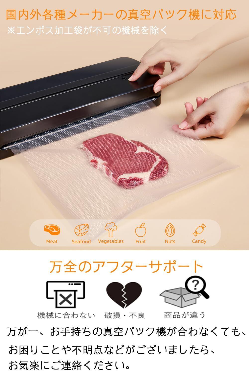 【鮮度長持ち・食材ロス削減】真空パック袋の中の空気を取り除くことによって食品の酸化、雑菌の増殖を抑え、食品の鮮度が長持ち可能で、匂い移りもなく、食品保存に最適、食材ロス削減・コスト効率化を実現でます。※食品を保存する際は、真空パックした後、冷蔵庫や冷凍庫にご保存する必要があります。【アフターサービス・安心購入】商品の管理に最善を尽くしておりますが、お届けした商品について疑問がありましたら、お気軽に弊店までご連絡いただけますようにお願いします。
