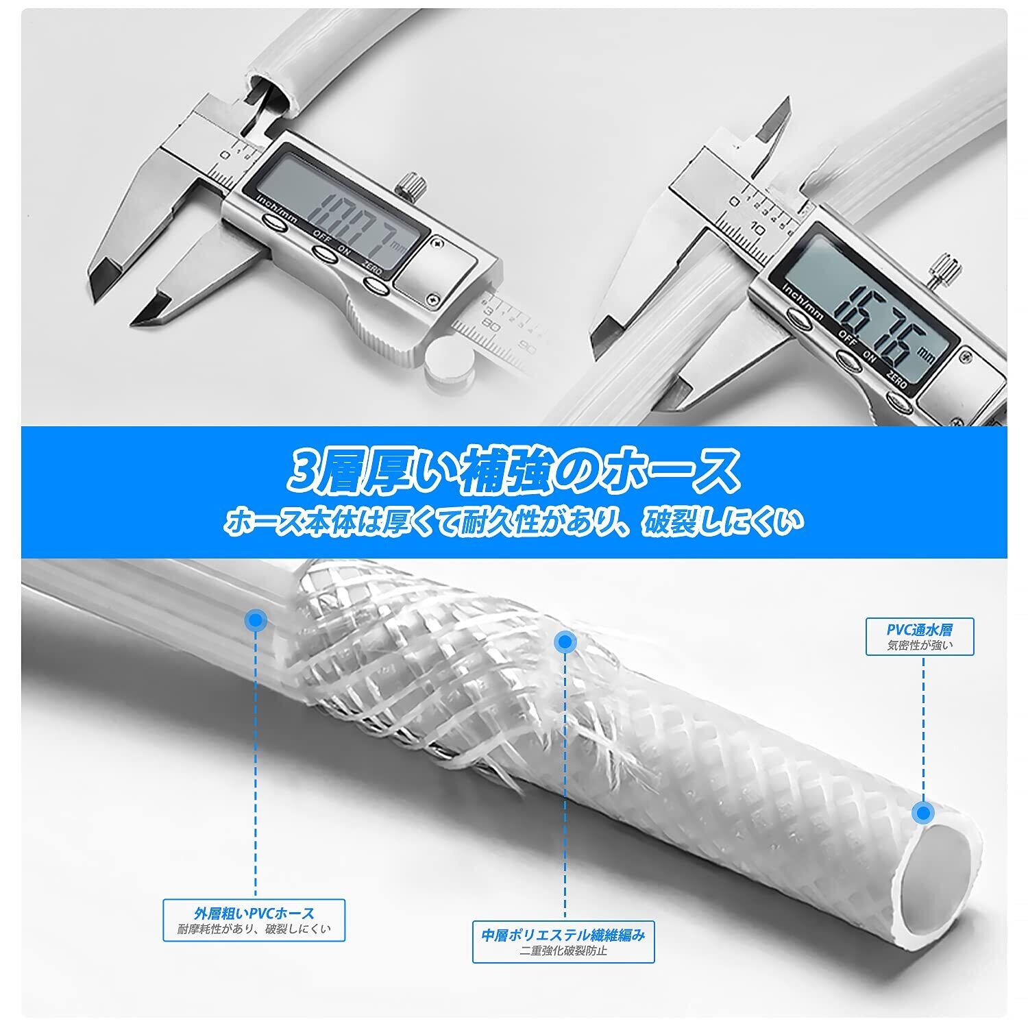 【材質】の洗濯機給水ホースがPVCとポリエステルを採用して、柔らかくて硬化せず、耐久性があります。3層厚み設計でパイプの破裂の心配はないでください。