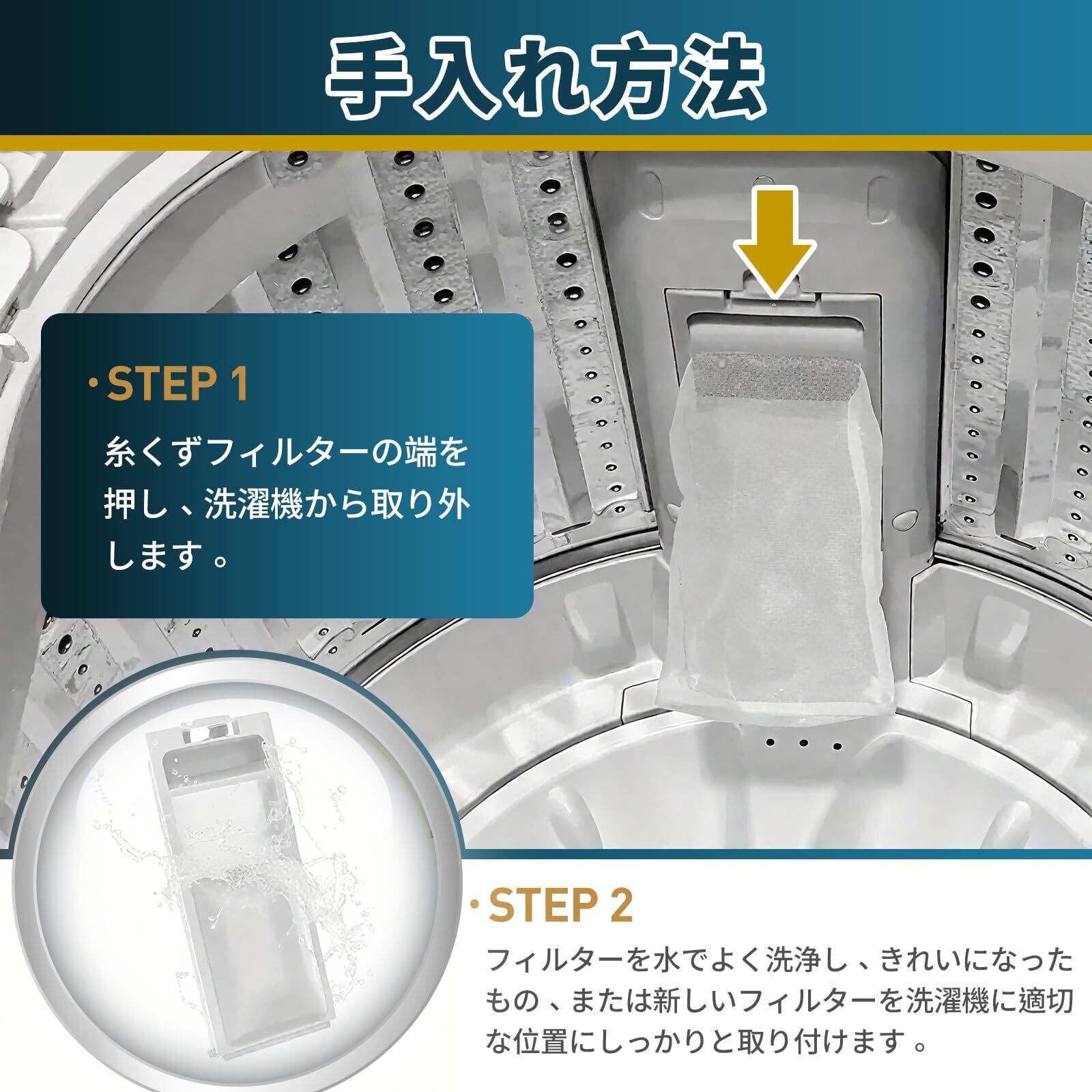 【効果的な糸くず除去】 この洗濯機用糸くずフィルターは、お家の洗濯をより快適で効果的なものに変えます。高品質の素材で作られたこのフィルターは、糸くずや髪の毛、ペットの毛などの不要なゴミをしっかりキャッチし、洗濯機の寿命を延ばすお手伝いをします。