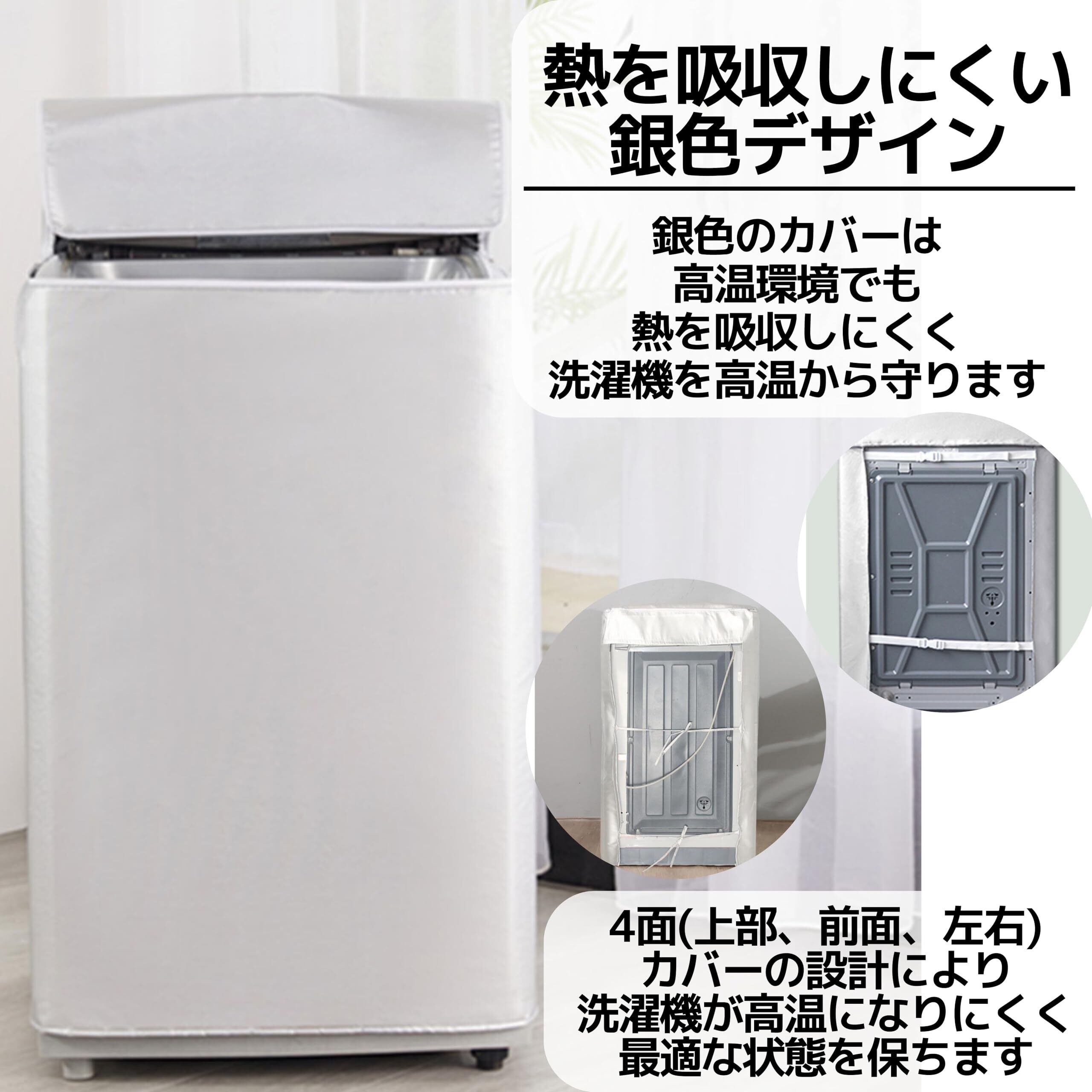 【熱を吸収しにくい銀色デザイン】 銀色のカバーは高温環境でも熱を吸収しにくく、洗濯機を高温から守ります。また、4面カバー (上部・前面・左・右)の設計により、洗濯機が高温になりにくく、最適な状態を保ちます。