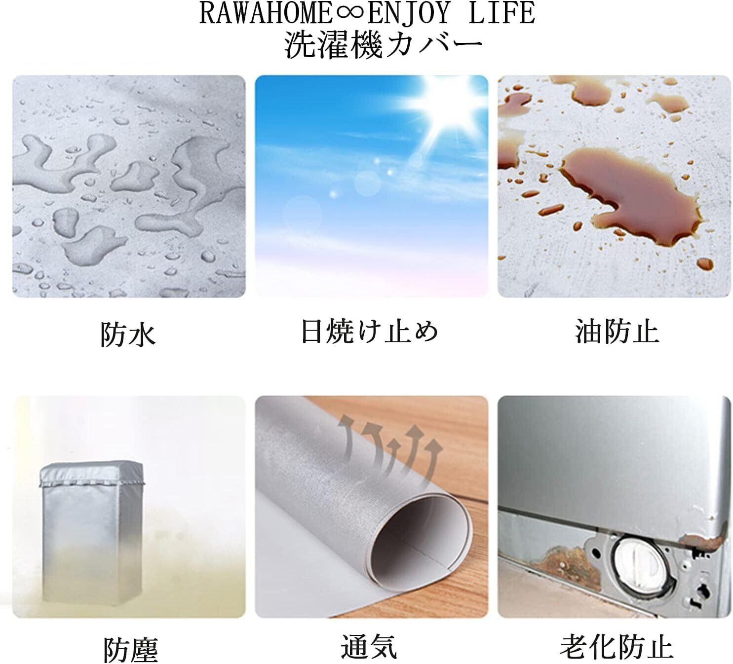 【耐用5年以上・過熱保護3面包み】銀コーティングのポリエステル生地を使用して、頑丈の同時に日焼けとも効果と防水防湿効果が優れていて、5年以上も引き続き耐用できます。作業中の洗濯機を過熱保護するため、本製品は3面包んでいて、後ろは3本の紐で結びつけられて、製品全体を固定しています。