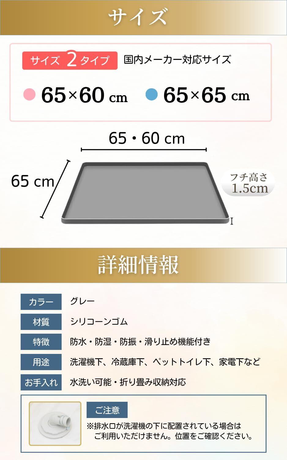 【2サイズ展開で国内メーカーに対応】 65×60cm・65×65cmの2サイズを展開。主要メーカーの洗濯機にぴったりフィットします。