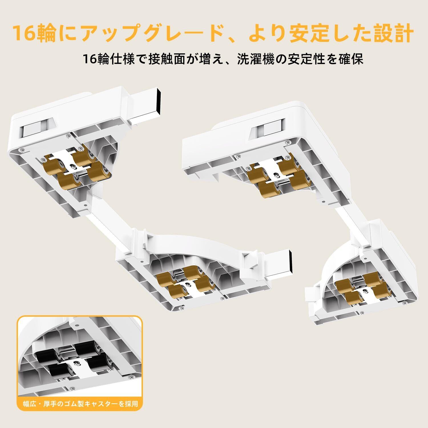 【簡単な移動と清掃で清潔な環境を維持】底部の16輪により、洗濯機や乾燥機を軽い力で移動可能。清掃が難しかった隙間や裏側も簡単にお手入れできるため、常に清潔な環境を保つことができます。特に頻繁な掃除が必要なご家庭に最適です。高性能かつ洗練されたデザインで、日常生活の利便性を大幅に向上させるこの洗濯機底座を、ぜひお試しください。