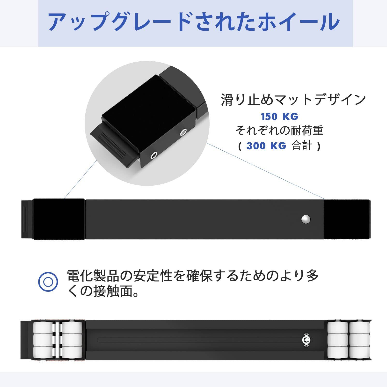 【滑り止め・防振減音】四隅に滑り止めマットが付属しています。移動時の安定性を強化する同時に、洗濯機を直接接触しなくて、作業中の振動防止も有効です。
