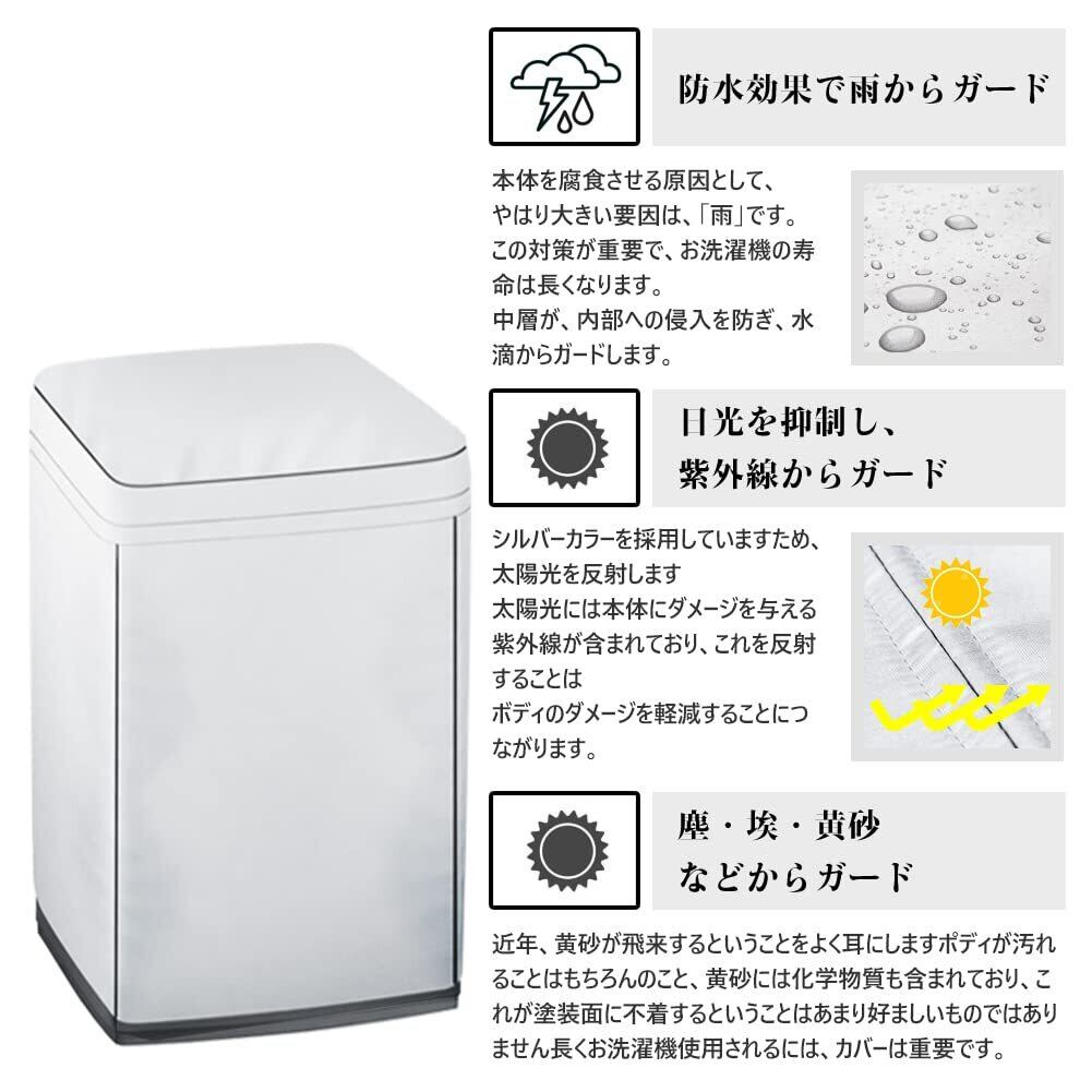 洗濯機カバー 屋外 防水 4面 ナイロンテープ ファスナー開閉式 老化防止 防塵 紫外線 厚手 (S:52*52*86CM 4.0~5.5kg対応)