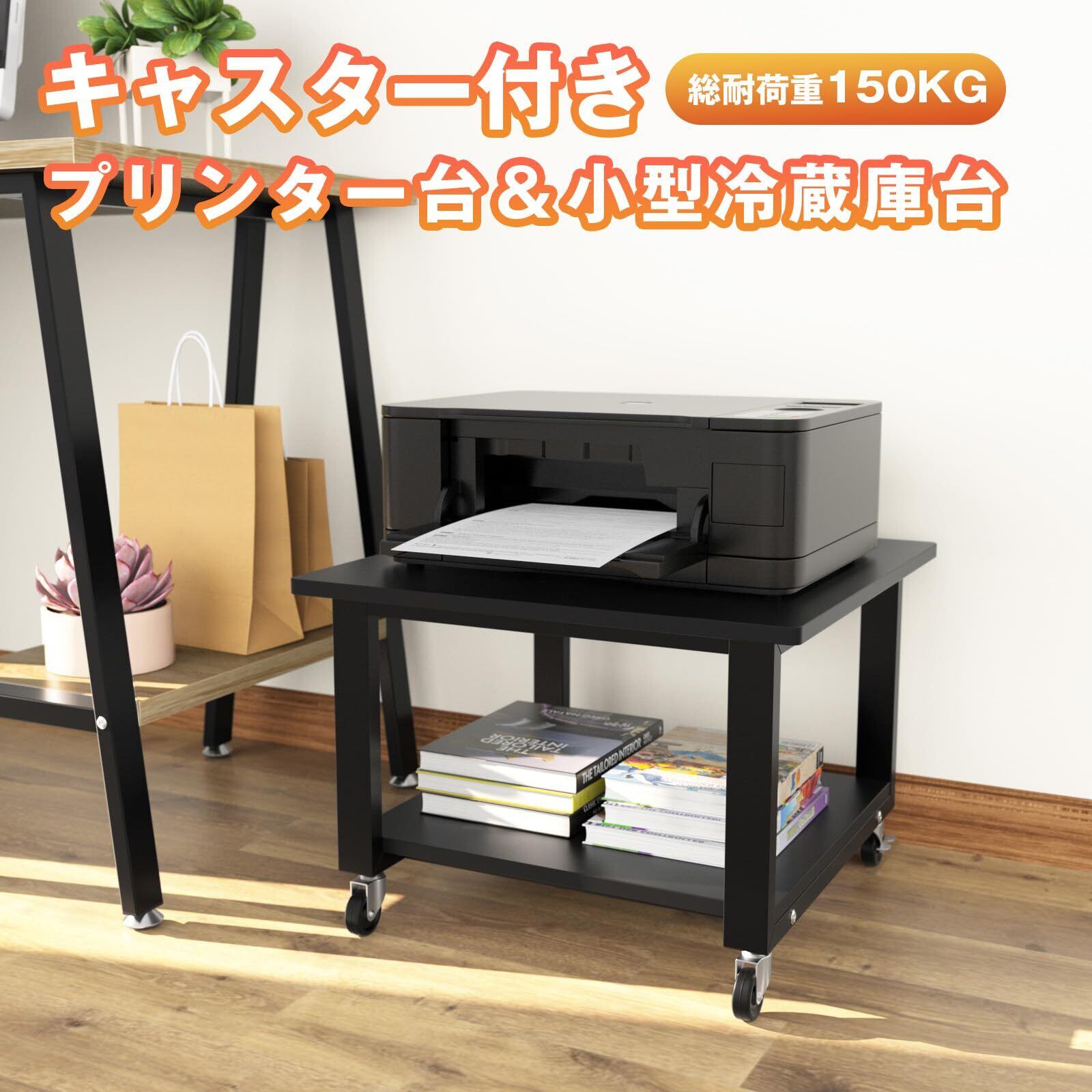 【実用性が高い】実用的なプリンタースタンド、レーザープリンタや複合機、消耗品をまとめて同時的に収納できるプリンタラックです。洗濯機・乾燥機・冷蔵庫用置き台としても使えます。下に調味料が収納できます。