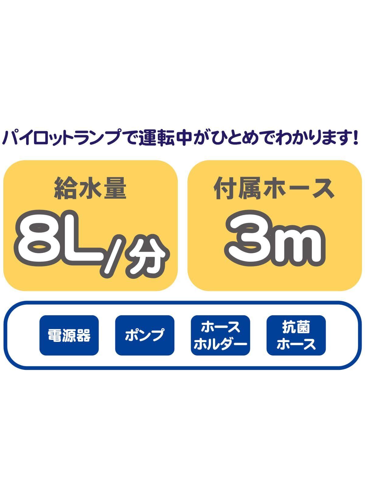 【吐水量】最大吐水量(0m) 10L/分 揚程1mの時 8L/分 揚程1.5mの時 6L/分