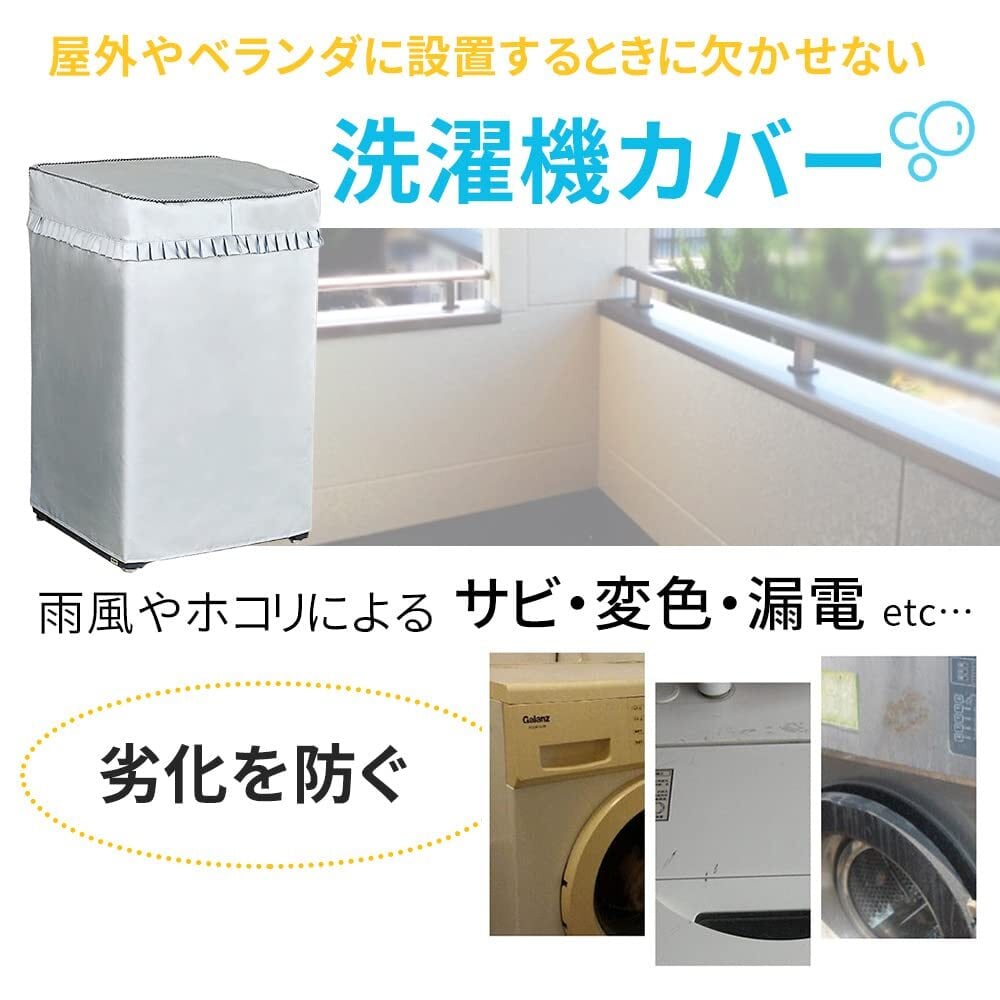 mitas 洗濯機カバー 防水 屋外対応 厚手 雨風 ホコリ 台風対策 ファスナー式 開閉可能 フリル付き 錆び防止 シルバー 撥水 日焼け防止 Lサイズ TN-SENTAKU