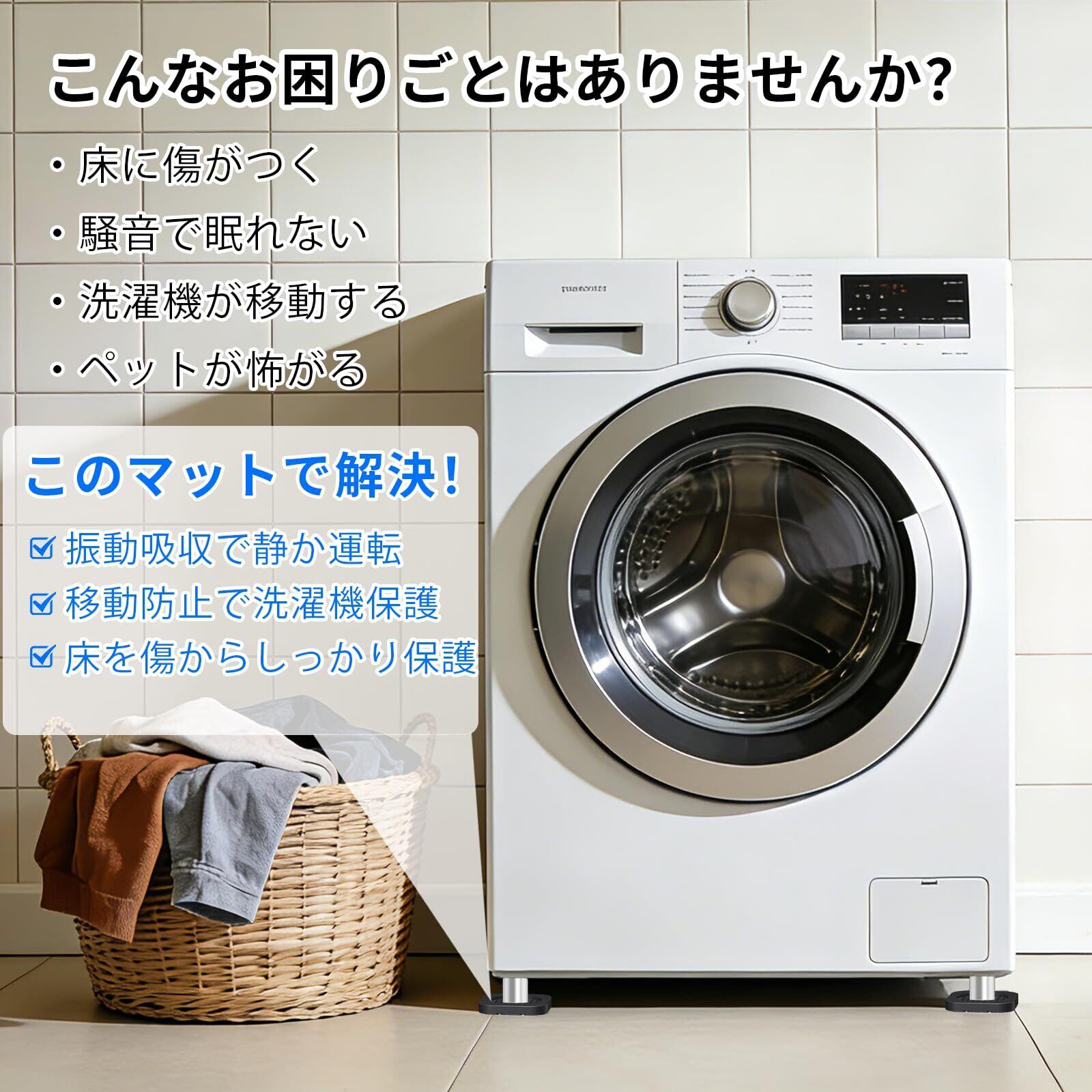 洗濯機用防振ゴム 防振 ゴム 振動吸収マット 振動軽減 防振防音 滑り止め 揺れ防止 底上げ 置くだけ 床面保護 簡単 耐久性 丈夫(4枚入り)