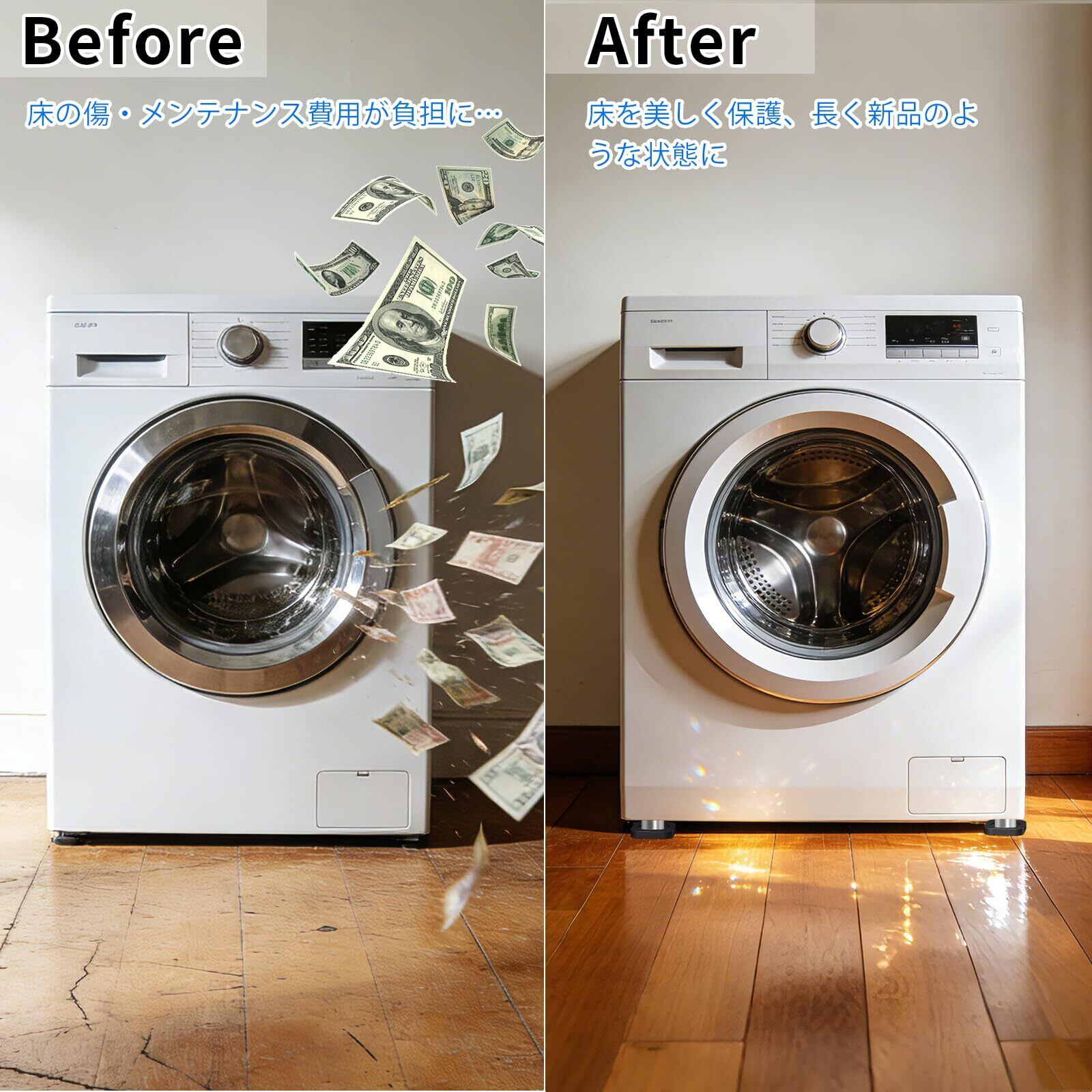 裏返して使用可能:ほとんどの洗濯機にしっかり対応可能。洗濯機、冷蔵庫など騒音や振動が気になる家電の脚下へ置くだけでカンタンに防振・防音・防傷効果が得られます。