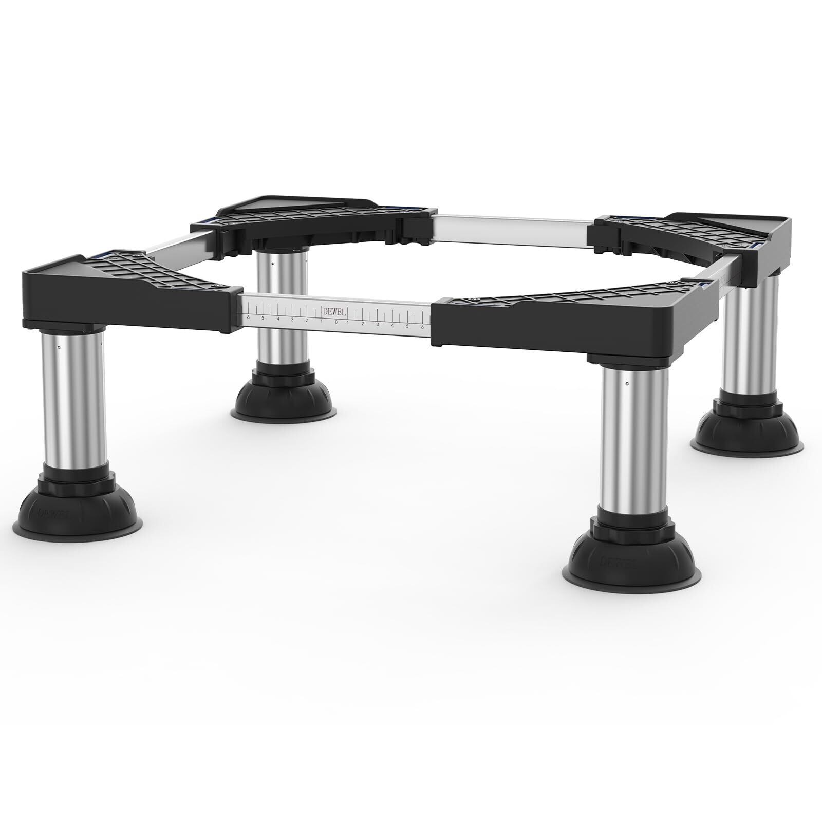 洗濯機 台 冷蔵庫置き台 20-22CM高度調節 DEWEL 大吸盤 増大増高ジャッキ付き 耐荷重約500kg かさ上げ台 高さ調節 伸縮式 幅/奥行44.5~70cm 減音防振 安定性が高い ステインレス製 防振パッド付き (ブラック)