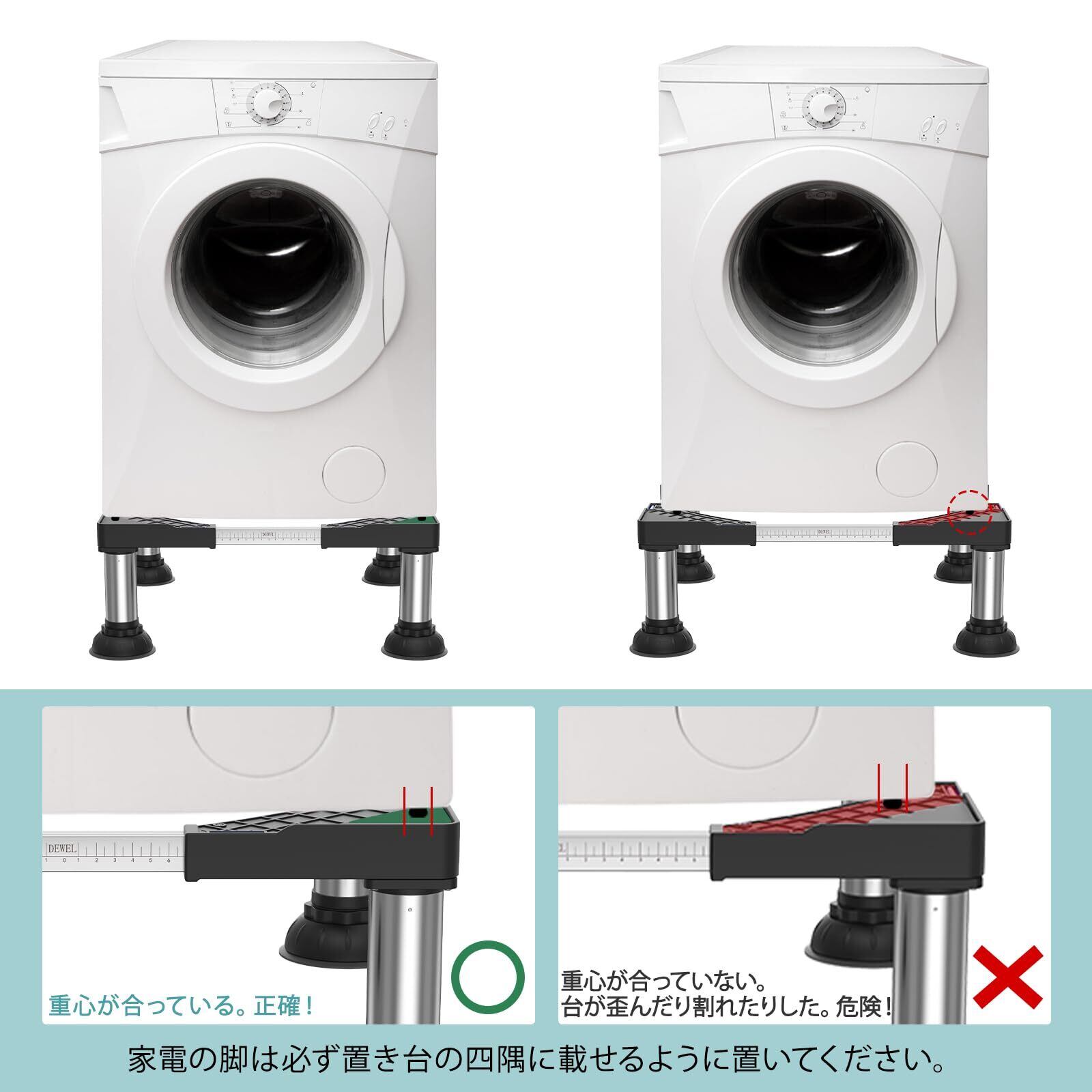 【品質素材】:DEWELが家電の騒音振動、錆び腐食、電気漏れ、排水不便、床のキズ・色移りなどのお悩みを解決します。高品質なステンレス鋼とABS樹脂を採用し、安定性や耐腐食性も抜群です。