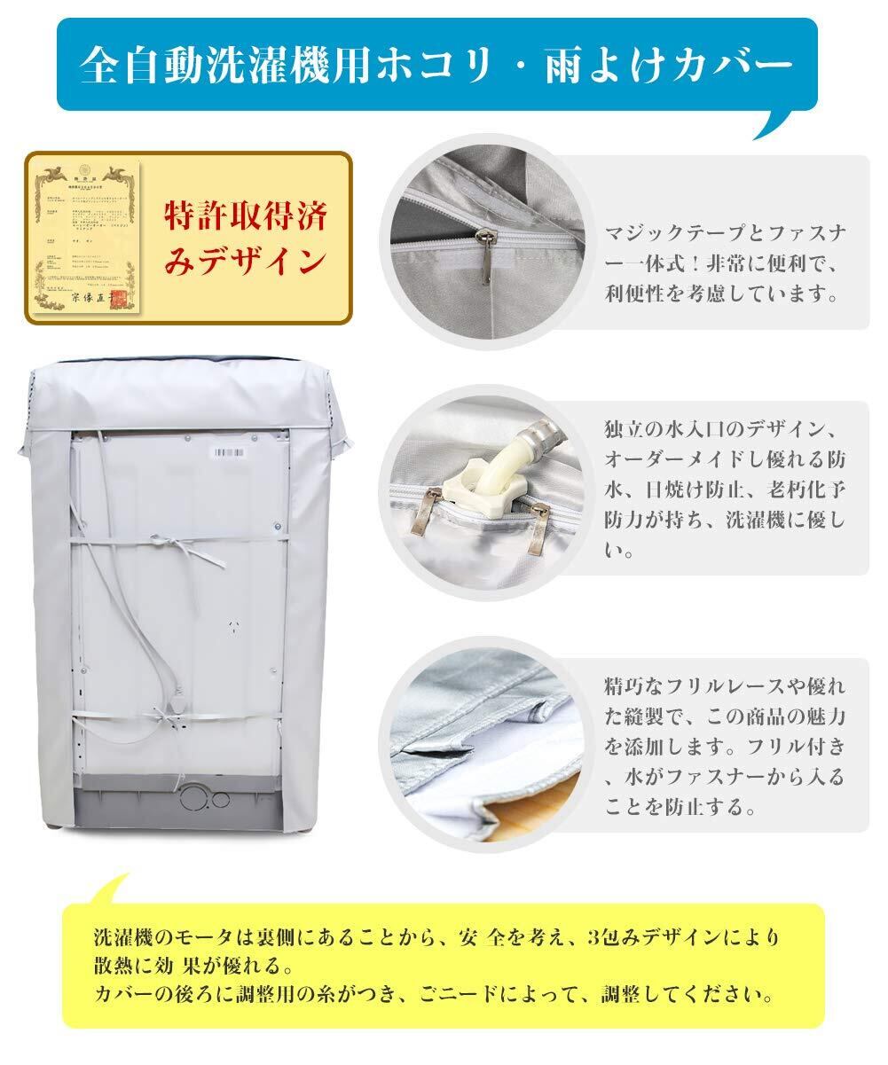 洗濯機カバー 防水 防塵 防湿 3面包み オックスフォード マジックテープ 全自動 防水生地6-8KGに対応