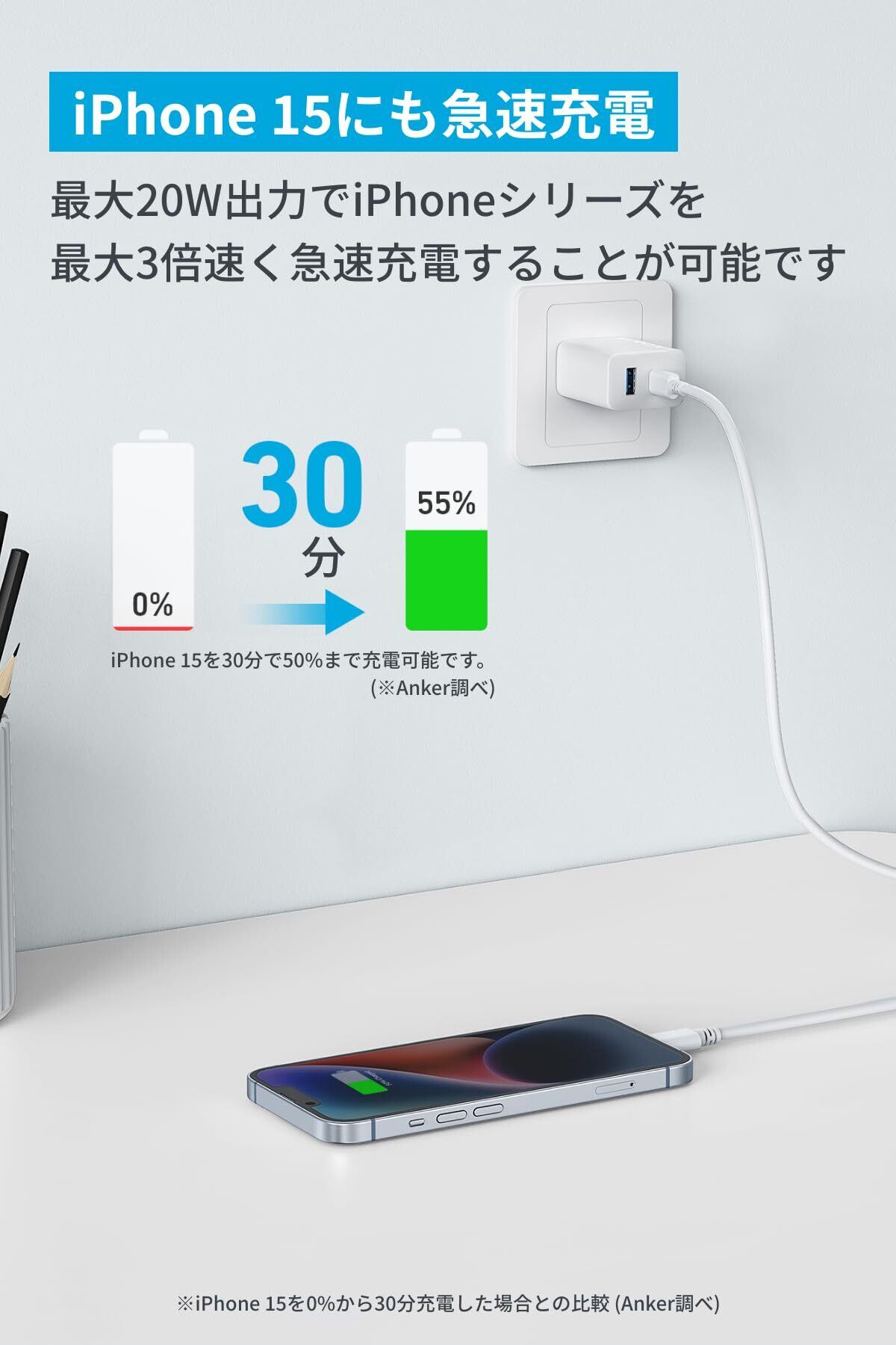 Anker Charger (20W, 2-Port) with USB-C & USB-C ケーブル 20W USB-C&USB-Cケーブル付属 2ポート急速充電器) Android スマートフォン iPad その他 各種機器対応 (ホワイト)
