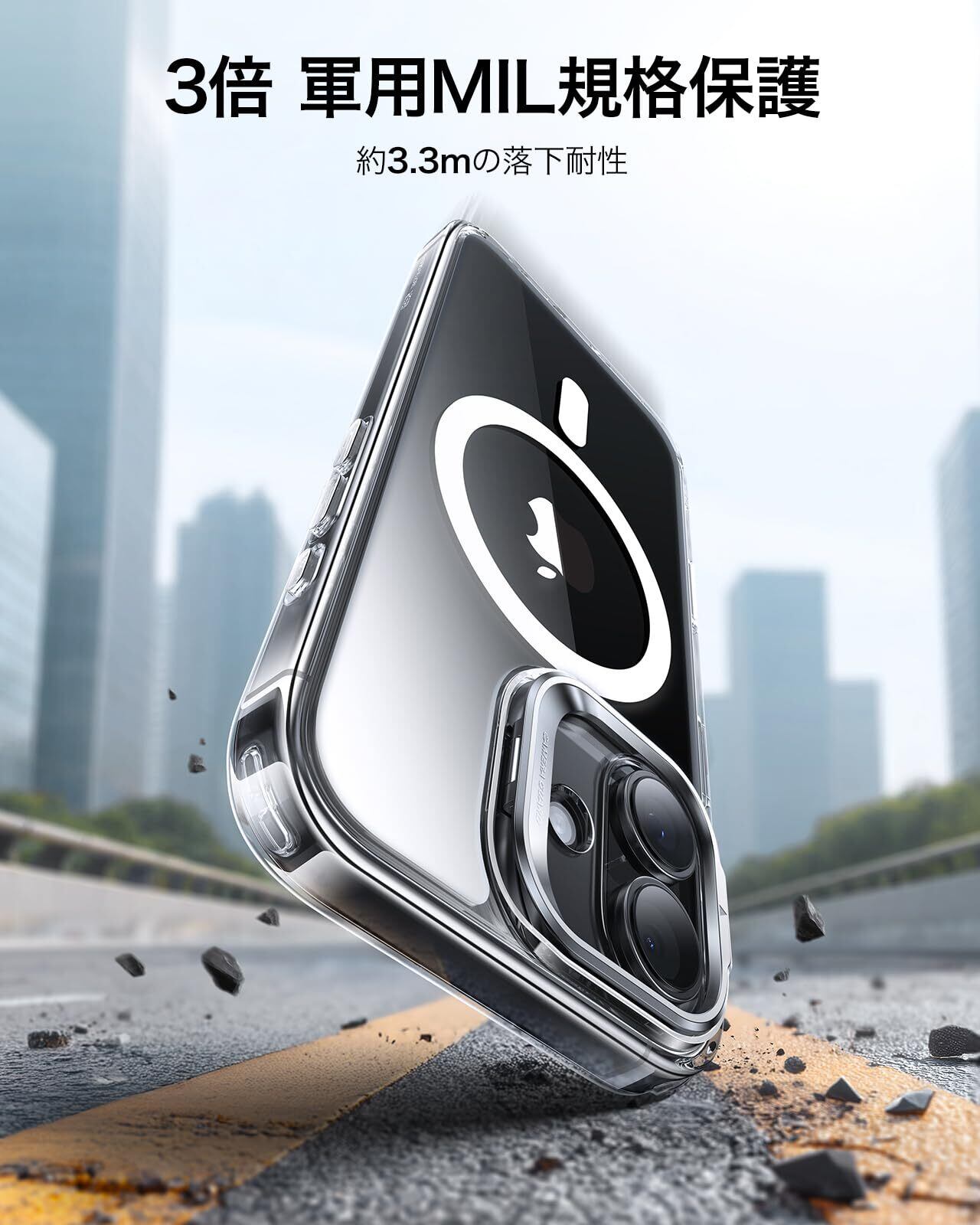 ESR iPhone 17 ケース MagSafe対応 3倍米軍MIL規格 カメラボタン付き 隠しスタンド 調整可能 ワイヤレス充電 エアガードコーナー 耐衝撃 傷防止 軽量 マグネットスマホケース 高耐久性 Qi2.2対応 最大25W高速充電 いphone17ケース アイフォン17専用Classicシリーズ(クリア)