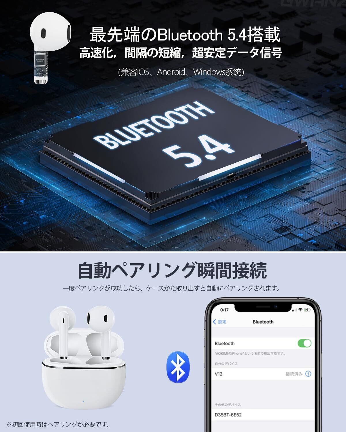 最新のBluetooth 5.4と高忠実な音質:このワイヤレスイヤホンは先進的なBluetooth 5.4技術とアンテナ技術を採用し、15mのBluetooth範囲で高速かつ安定した伝送を提供します。内蔵の高音質オーディオチップが音楽の細部まで捉え、鮮明な高音と適度な低音のある豊かなサウンドを実現します。また、ENC通話ノイズキャンセリング技術により、通話中の環境ノイズやエコーを低減し、クリアなBluetoothイヤホンのHi-Fi音質を実現します。これらの特長により、ユーザーは優れた音響体験を得ることができます。