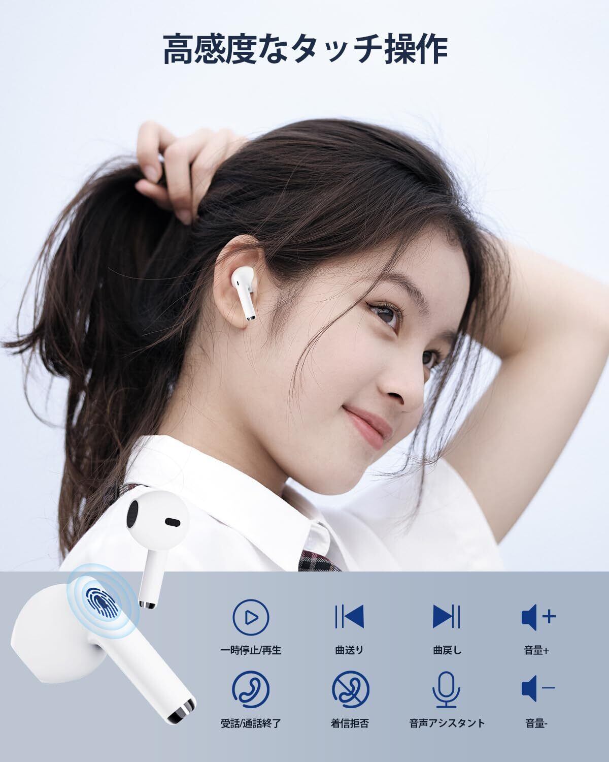 自動ペアリングとスマートタッチコントロール:ワイヤレスイヤホンをマグネット充電ケースから取り出すだけで、Bluetoothイヤホンが自動的にオンになり、お使いのデバイスに接続されます。スマートタッチコントロールを採用した設計により、タッチ操作がストレスなく行え、簡単なタッチコントロールでで曲送り/曲戻し、音楽再生/停止、電話応答/終了/拒否、電源オン/オフ、音量調整、など基本的な操作が実現です。