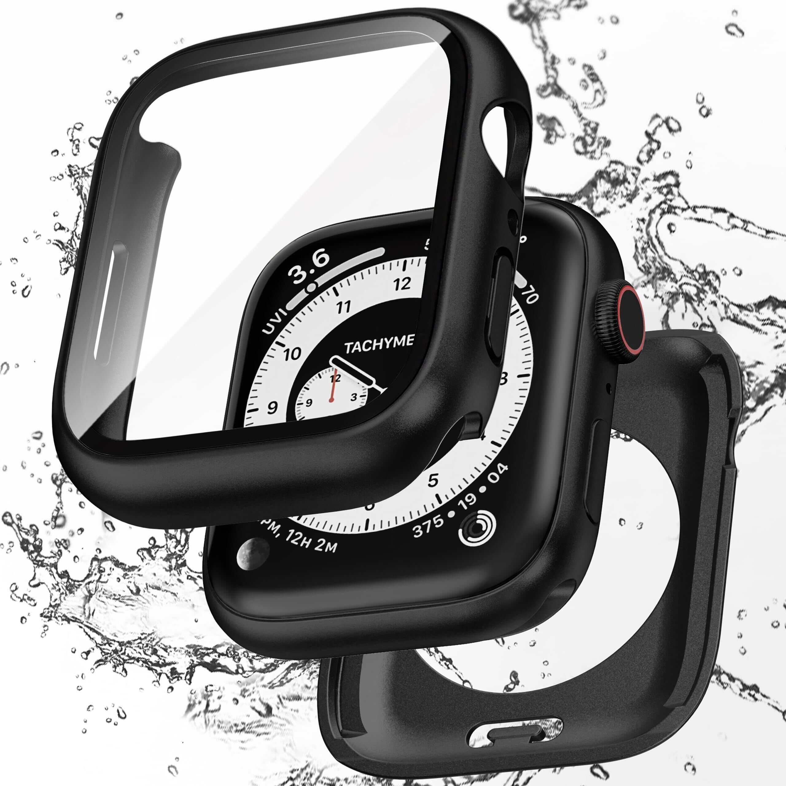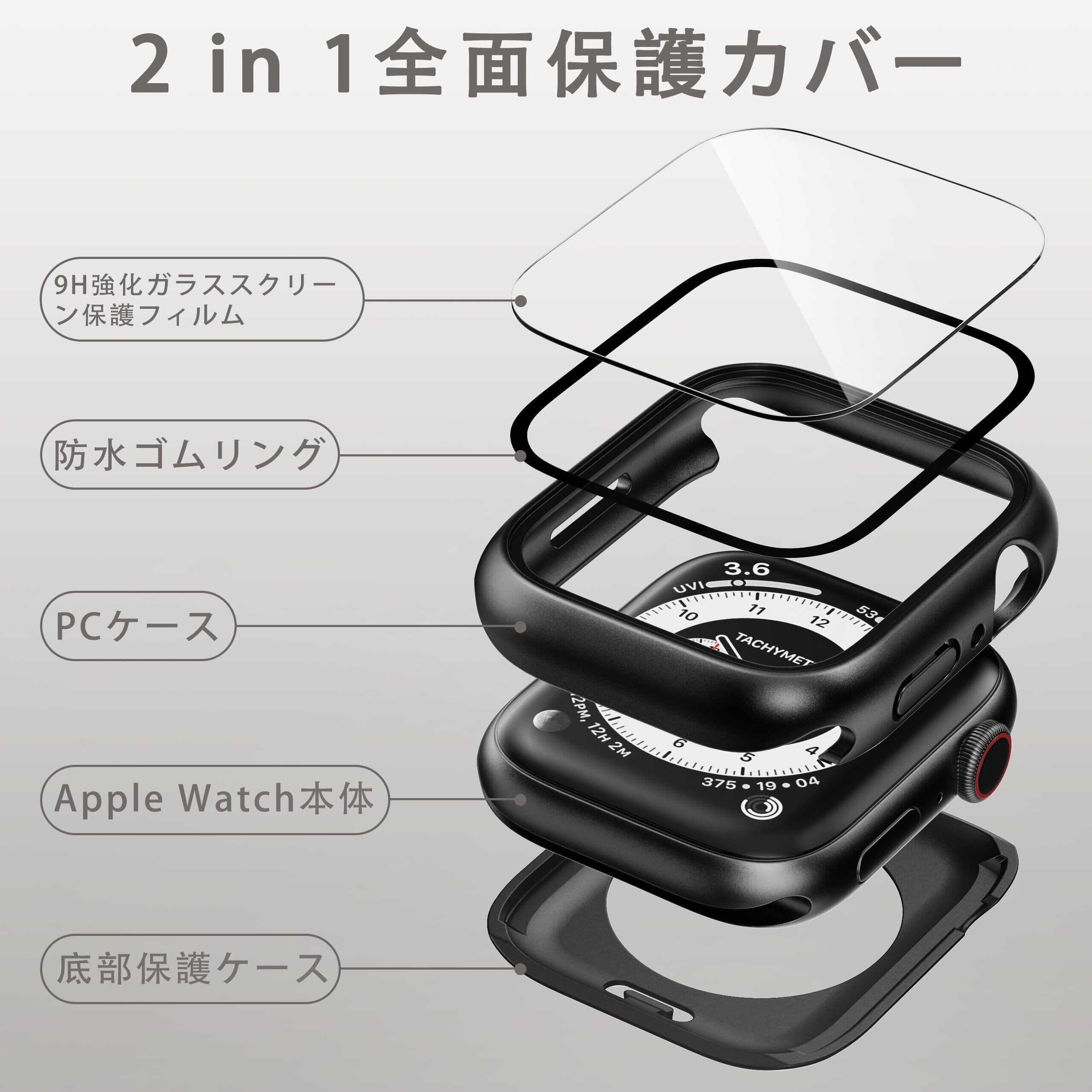 Puptoya アップルウォッチ 防水 カバー Apple Watch Series 6 5 4 SE3 SE2 対応 44mm ケース 2 in 1 前後の保護 PC+ガラス素材 高透過率 装着簡単 脱落しやすい 耐衝撃 iWatch 44mm ブラック