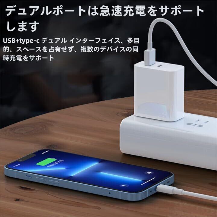 タイプc 充電器 USB Type-C 充電器 PD20W急速充電対応 USB-A & Type-C コンセント式電源アダプター 2ポート搭載 iPhone 17air/pro max/16/15/14/13/SE3 iPad、Android/タブレット (01white, 1m1m)