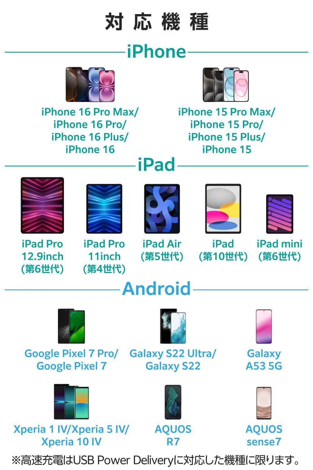 ■対応機種:USB Type-CプラグからUSB Power Delivery (20W)の規格内で充電可能な機器