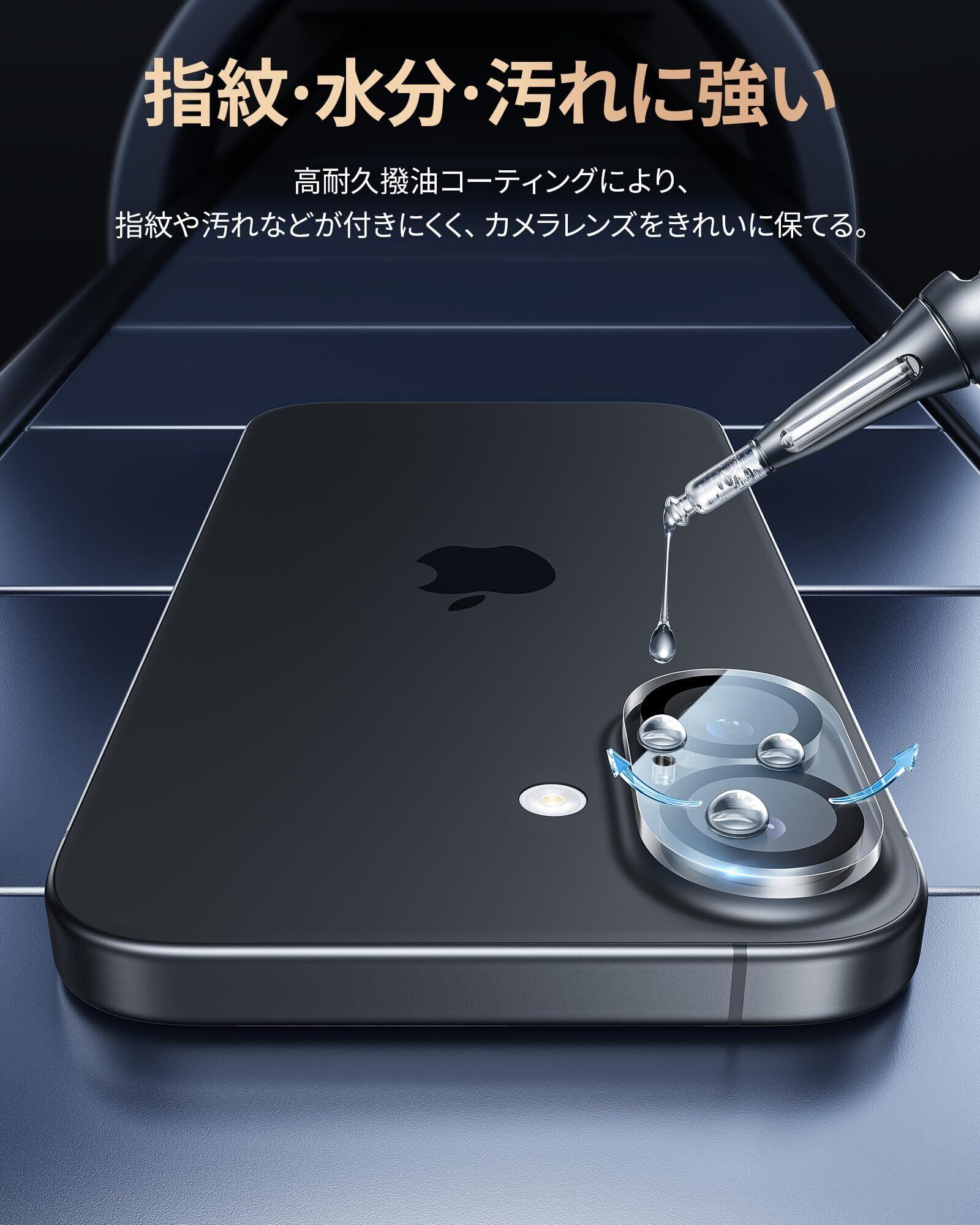 「9H硬度·傷付きにくい」9H硬度ガラスを採用し、ハードコーティング技術により外部からの衝撃をフィルムが吸収し、衝撃を緩和し画面の破損を最小限に抑えます。日常生活の中で、バッグやポケットの中で付いてしまう引っかき傷に対しても高い耐久性を持っているので、いPhone17/いPhone16/いPhone16Plusのカメラをしっかりと守ります。また、特殊な飛散防止加工により、万が一割れてもガラス破片が飛び散ることなく安心です。