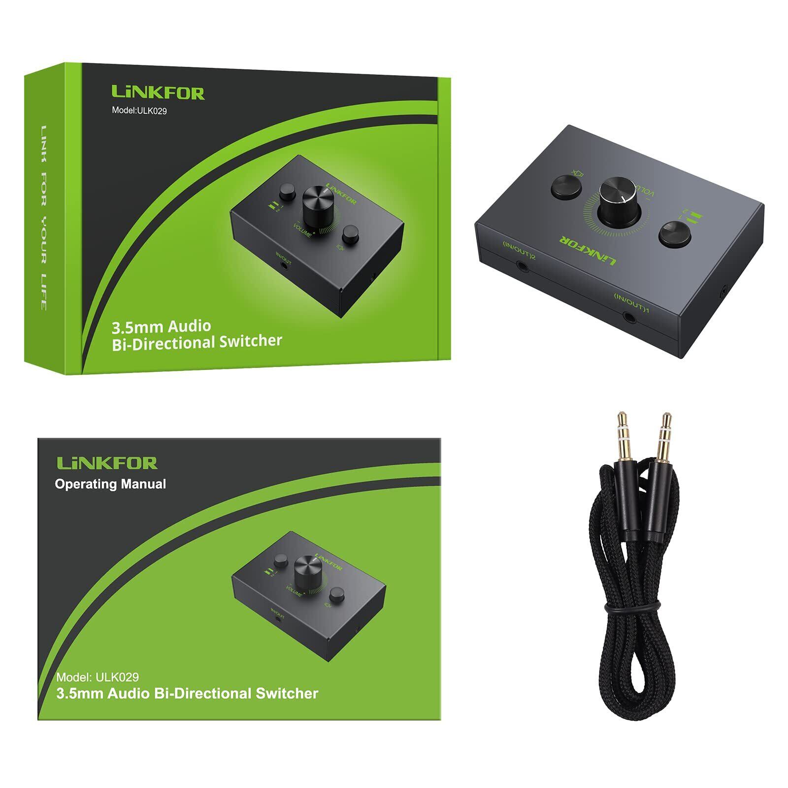 LiNKFOR 2ポート オーディオスイッチャー 2入力1出力/1入力2出力 3.5mm ヘッドフォン スイッチ スピーカー セレクター 切替器 スプリッター 電源不要 音量調整でき ミュート機能 3.5mmオーディオケーブル付き (2入力1出力/1入力2出力)