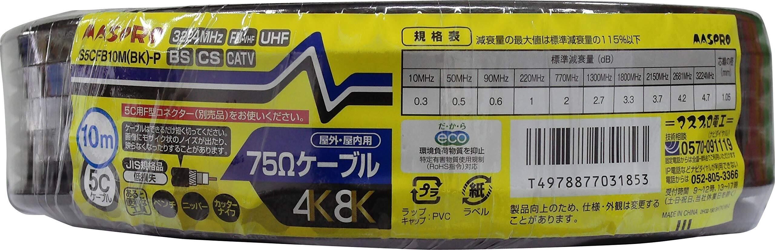 マスプロ電工 家庭用75Ω5Cケーブル 黒色 10m S5CFB10M(BK)-P