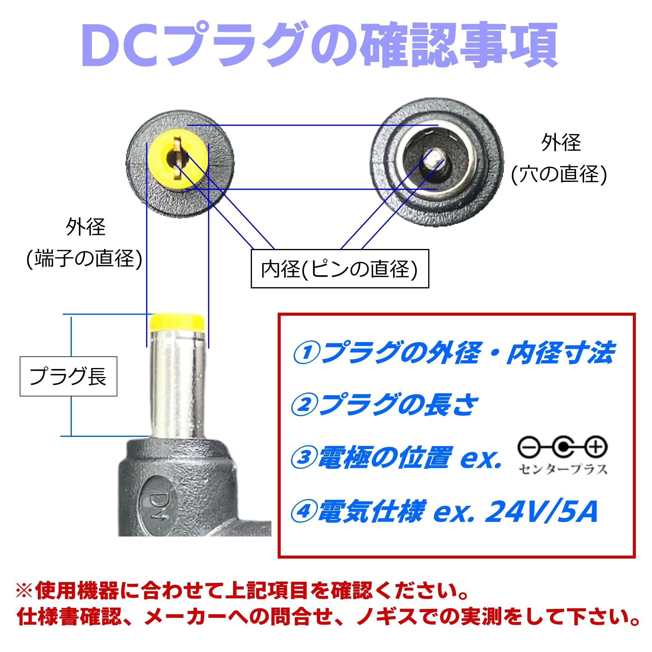 【注意事項】 ※DCアダプタは電圧、電流が合っているか、プラグ部のプラス・マイナスが合っているか必ずご確認ください。間違った接続をしますと機器の破損となることがあります。 ※デザインは予告なく変更することがあります ※汎用品のため動作をするものではありません。