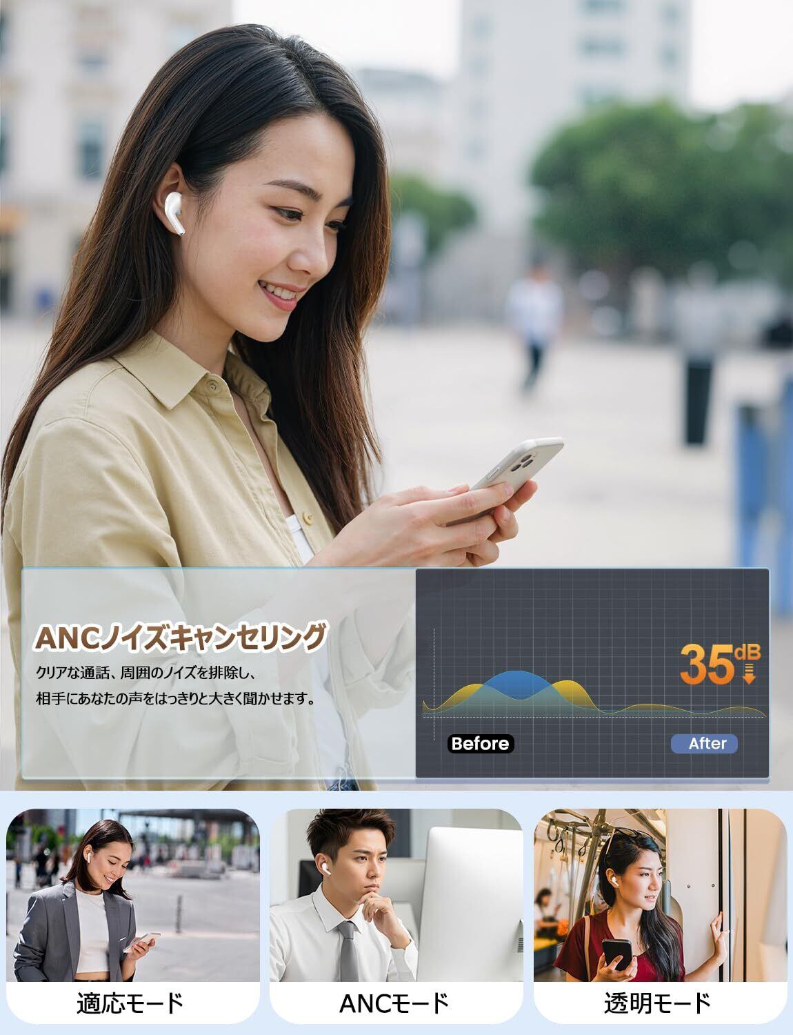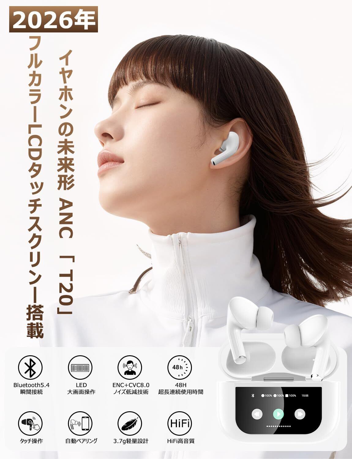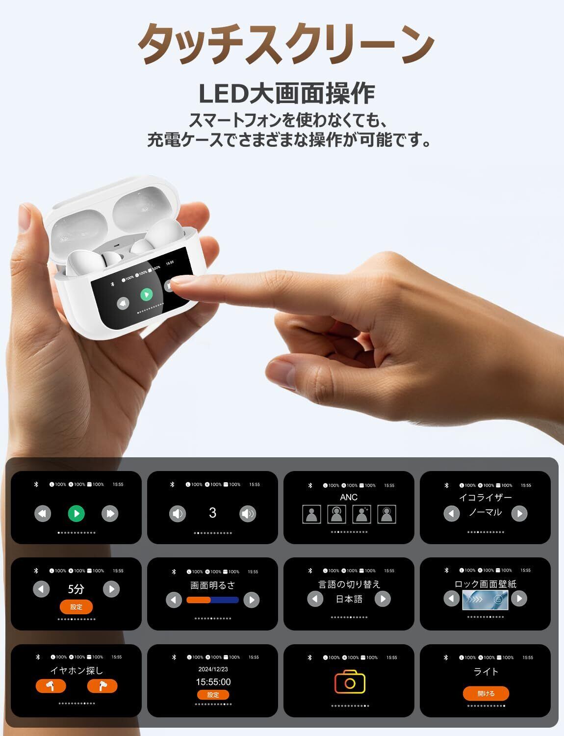 イヤホン Bluetooth ワイヤレスイヤホン Bluetooth5.4 多機能タッチスクリーン ANC 対応 AIスマート IPX7防水 ENC通話 最大48時間再生 ブルートゥースイヤホン HiFi音質 接続瞬時 Type-C充電 小型/軽量iPhone/Android対応 運動/ゲーム/テレワーク/通学/通勤/WEB会議/音楽用(白)