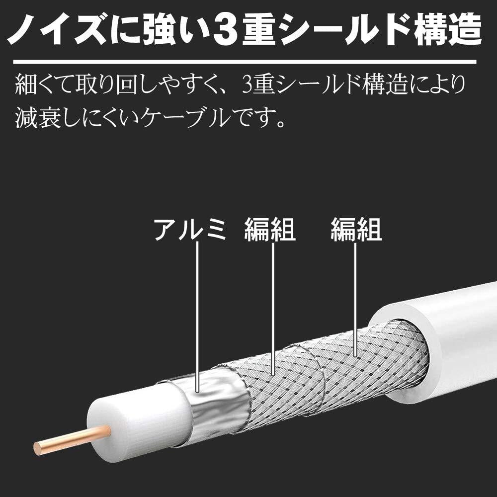 コンパクトなボディと、長さ20cmの極細ケーブルにより配線しやすくテレビ背面がすっきりします。また、ケーブルは3重シールド構造でノイズが少なく、4K8K放送の地上デジタル・BSデジタル・110度CSデジタルに必須の高シールドタイプ。2Cの極細ケーブルのため取り回しが容易にできます。また、本体内部は金属ケースによりノイズを防ぎます。