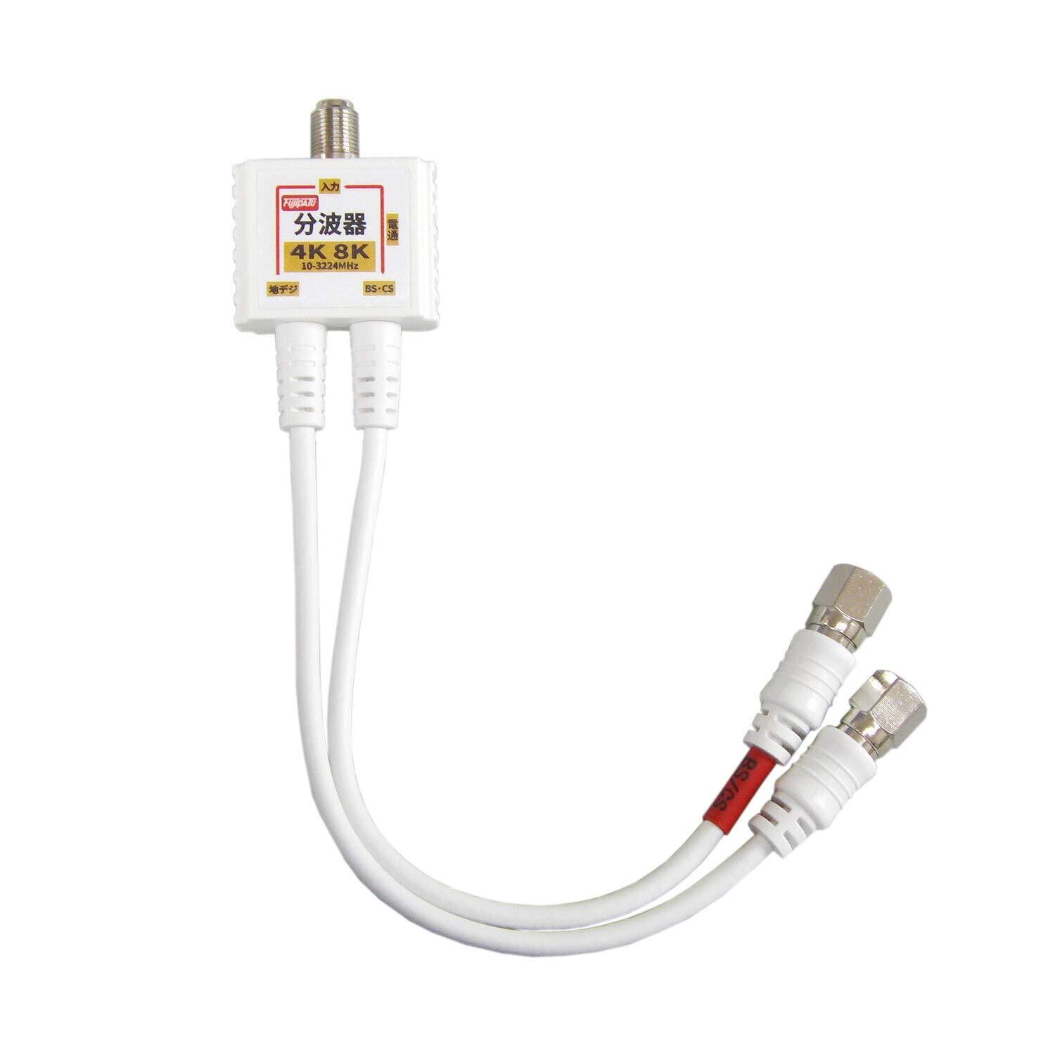 F-Factory 分波器 アンテナ分波器 4K8K BS CS 地デジ CATV 放送対応 S-2C-FB 極細 (スリム) ケーブル一体型 0.2m 金属ケース+3重シールド構造 1本 ニッケルメッキ ホワイト FF-4877WH