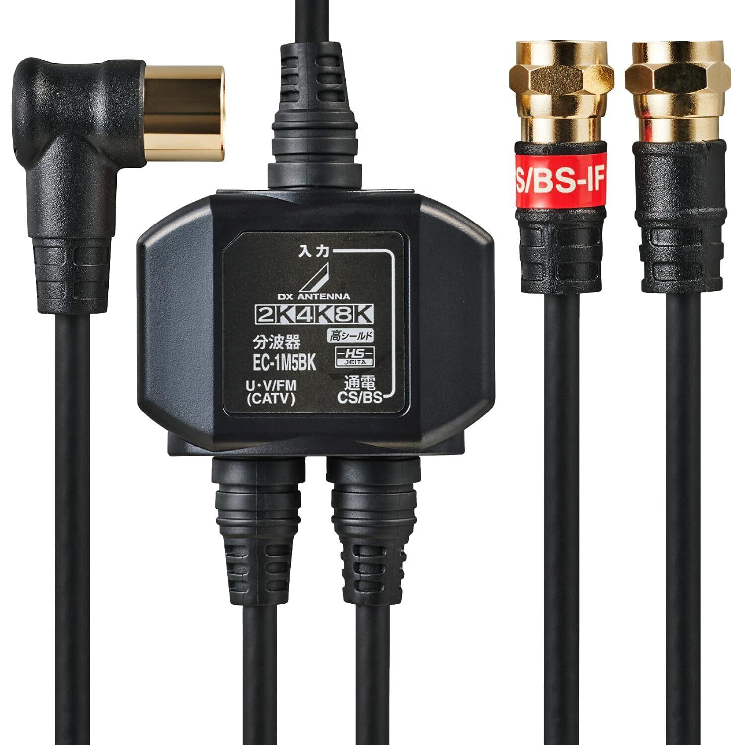 DXアンテナ 分波器 アンテナ分波器 地デジ・BS/CS放送対応 入力側ケーブル2m/出力側ケーブル0.5m ケーブル一体型 ブラック EC-1M5BK(H)