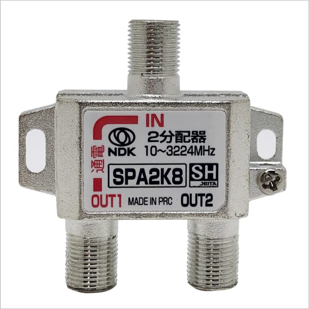 二幸電気工業 アンテナ分配器 2分配 (4K 8K BS CS CATV 地デジ) 屋内用 一端子電流通過型 SHマーク付 (SPA2K8) (1端子通電2分配器)