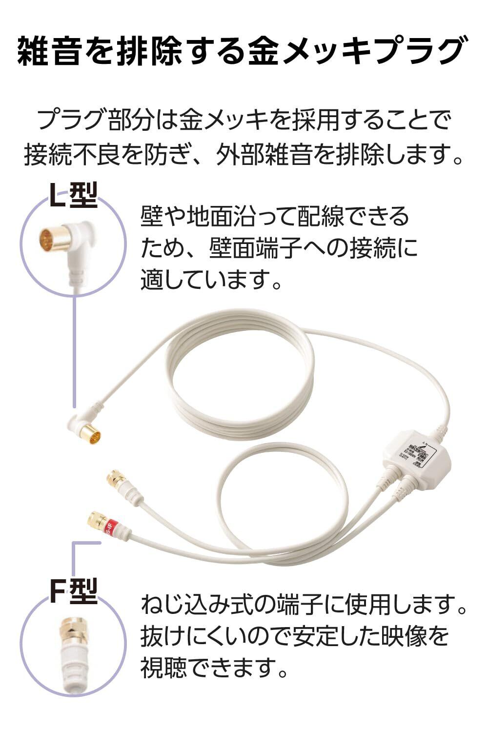 入力側L型プラグ付2Cケーブル 2m付。出力側 F形プラグ付2Cケーブル 0.5m付。