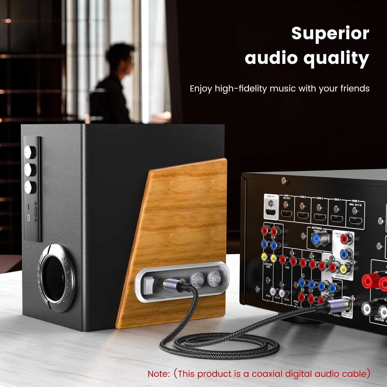 MOSWAG RCAオス-RCAオス 同軸デジタルケーブル3m(3メートル) サブウーファー ケーブル 同軸デジタルオーディオ コアキシャルケーブル ホームシアター、HDTV、サブウーファー、Hi-Fi システムなどに適応
