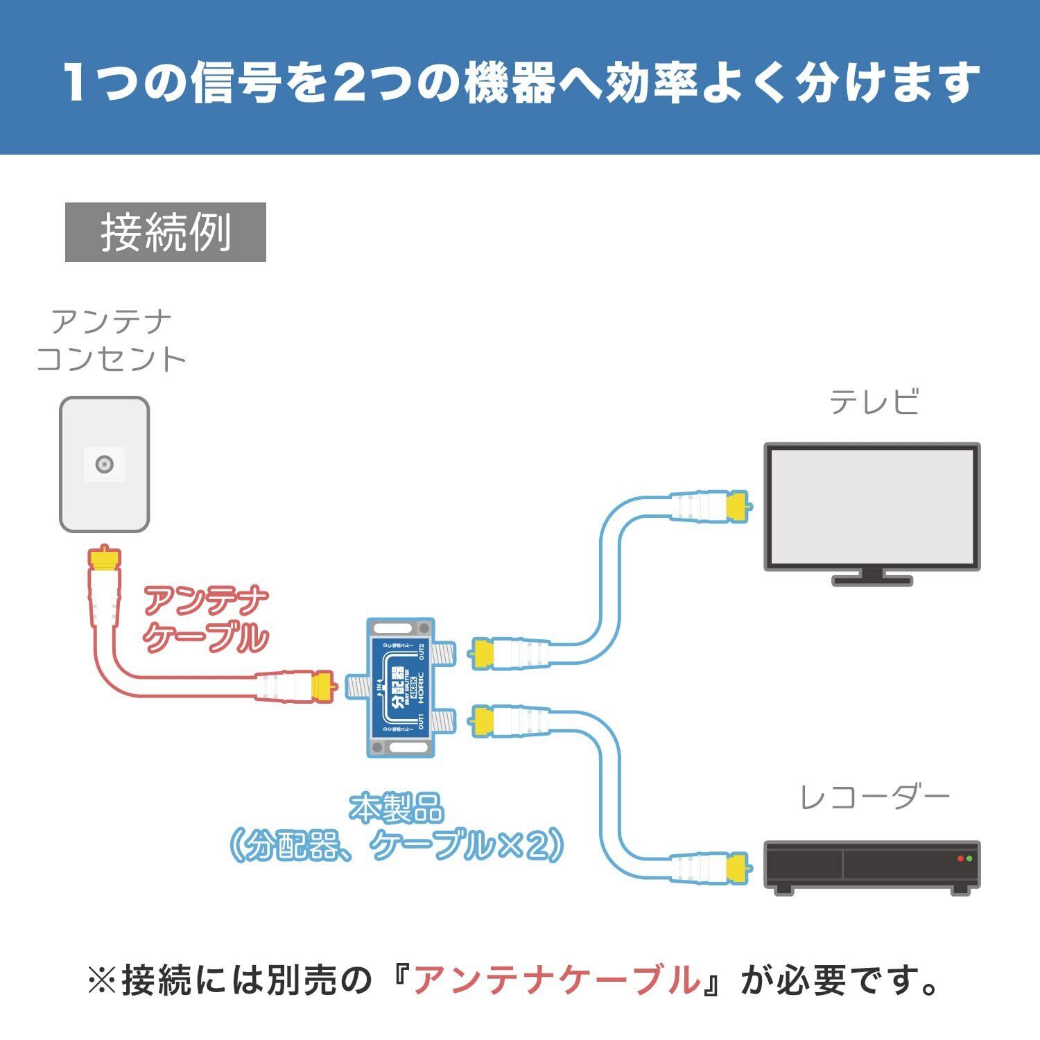 1つのアンテナ信号を効率良く分配します。本製品を使用することにより、テレビとレコーダーなどの2台の機器へ分配した信号を送ることが可能になります。