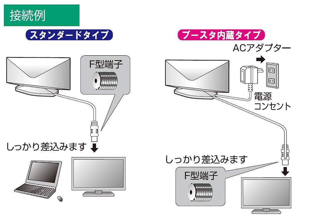 【仕様】F型端子の為テレビに直接接続できます。また、テレビチューナー付きパソコンにもご使用いただけます。