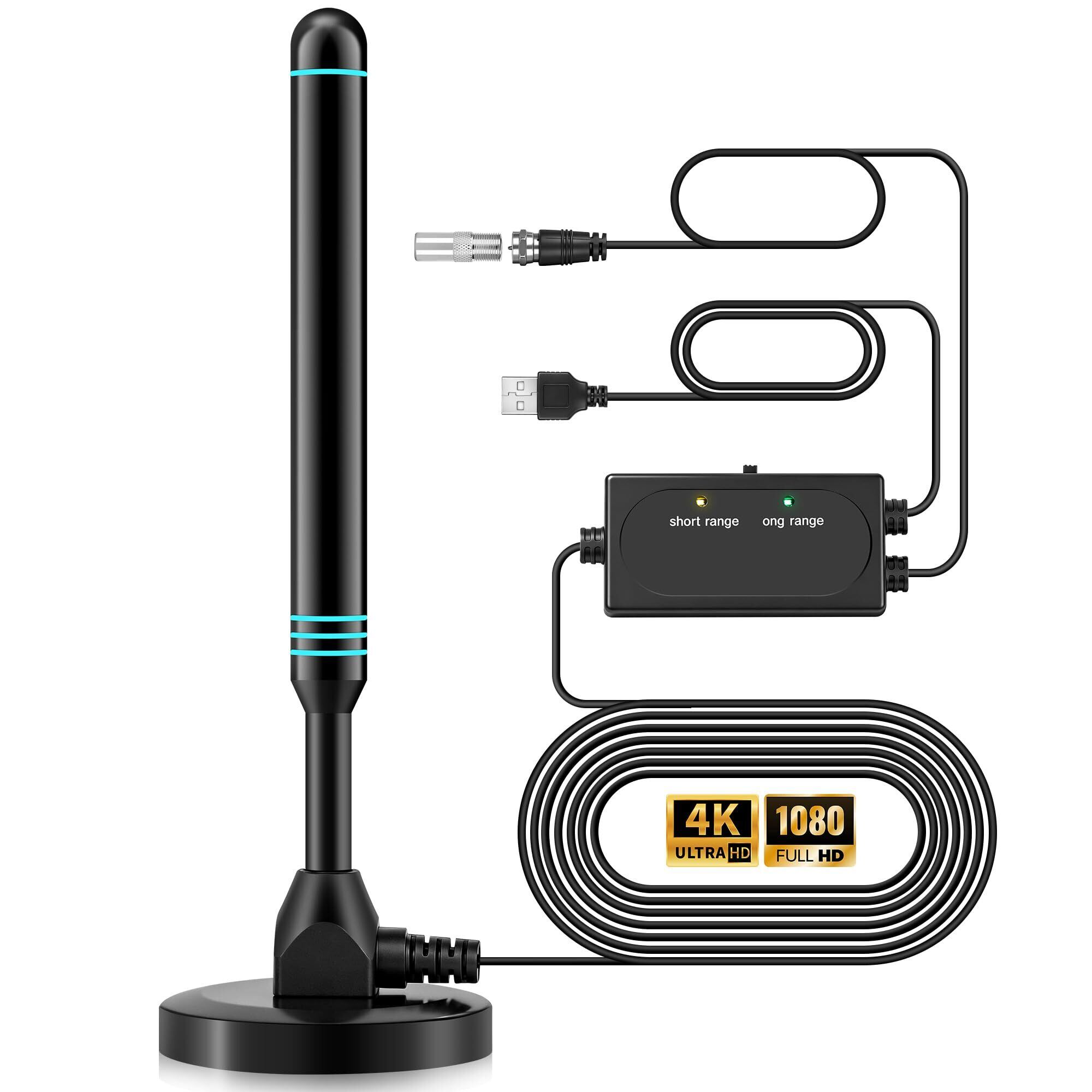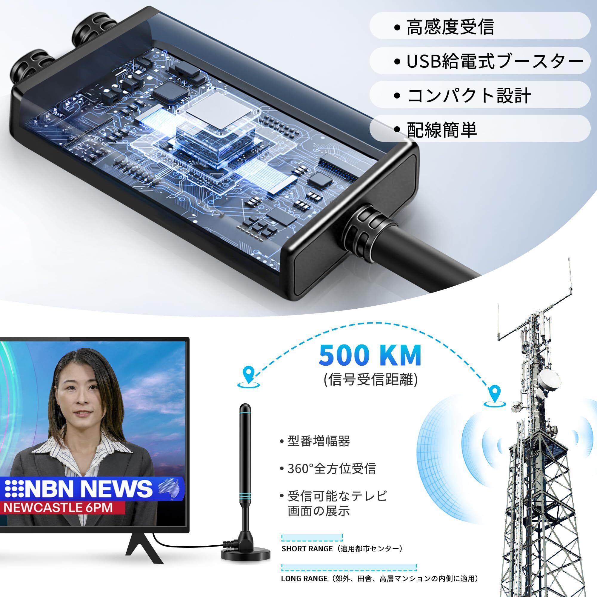 室内アンテナ テレビアンテナ 4K HDTV 360度全方位受信 改良 高性能 高感度 弱電界地域用 設置簡単 USB式 薄型&小型軽量信号ブースター付き 全種類 UHF VHF 対応 レッド
