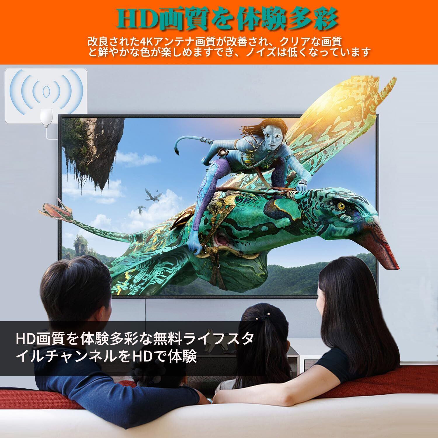 室内テレビアンテナ フラットデザイン 4K/8K&ワンセグ対応 1080P 設置簡単 360度回転調整 UHF/VHF受信 日本語マニュアル付き (ホワイト)