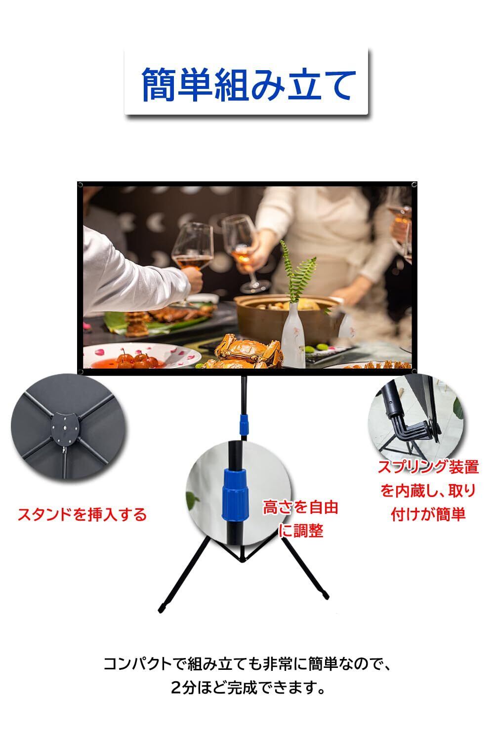 自立式 プロジェクタースクリーン4K対応 16:9 100インチ 三脚式 屋内屋外兼用スクリーン 防しわ加工 2分で簡単設置可能