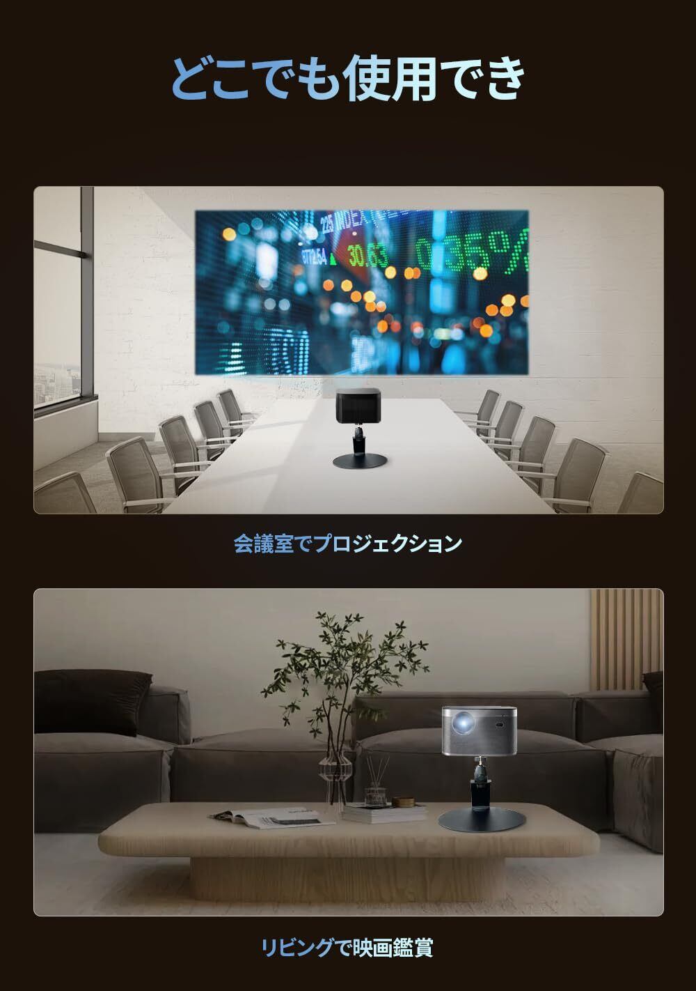 【持ち運び便利·多用途】取り外し可能で、セットアップも簡単のため、どこでも持ち運びに便利です。ベッドサイド、ソファ、リビングテーブル、オフィスなど、場所をとらずに好きな場所に置くことができます。見た目がスタイリッシュで、プロジェクター本体とピッタリ合うデザインが特徴です。部屋のインテリアに調和し、高級感を演出します。