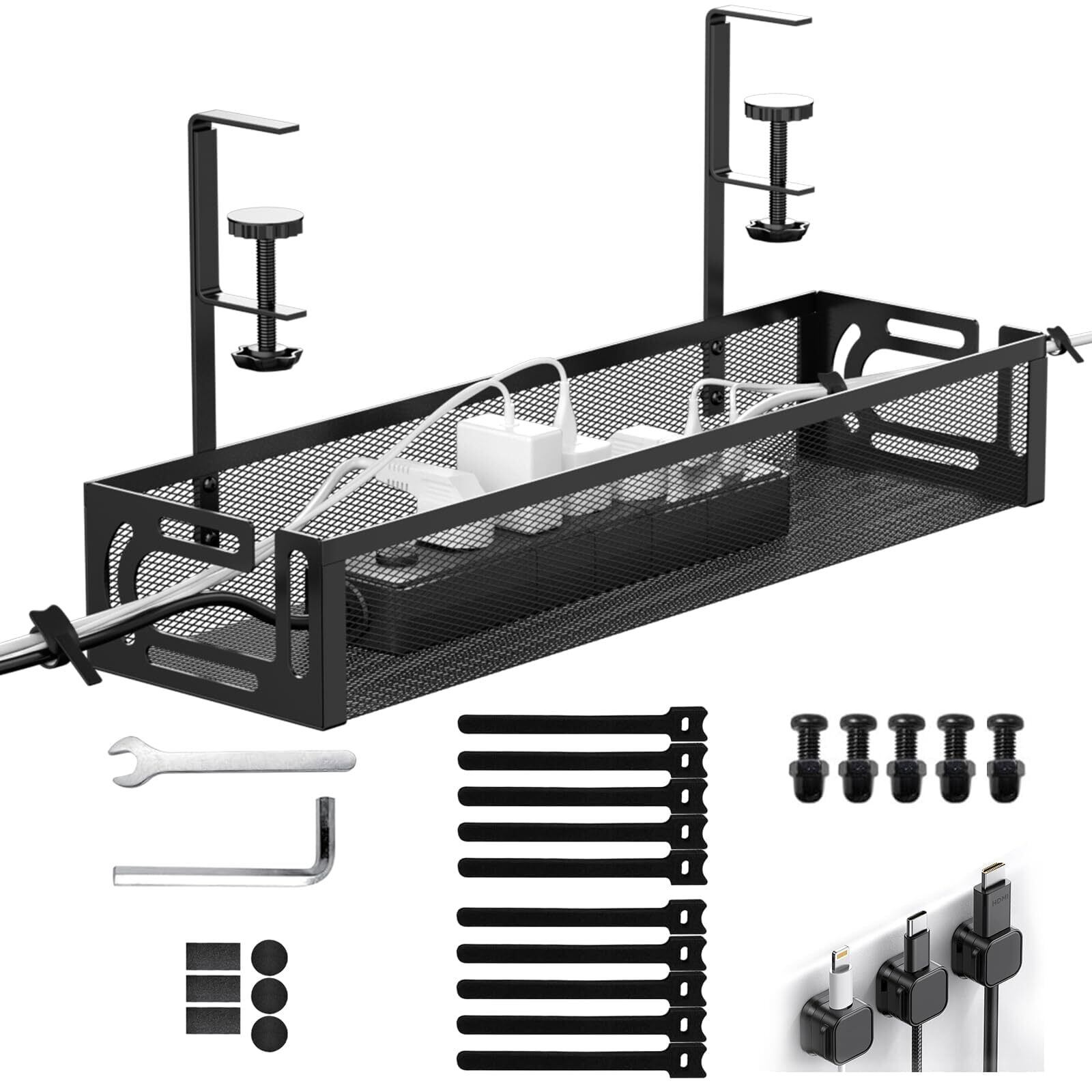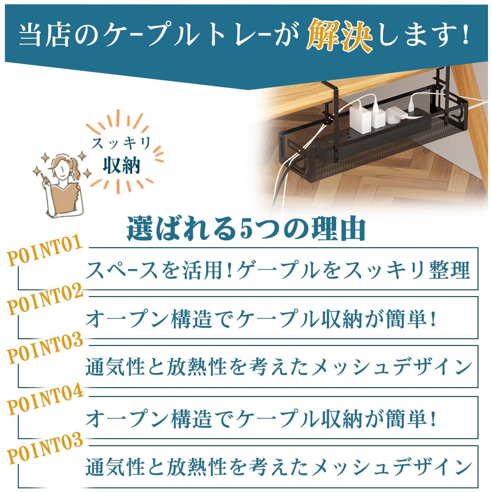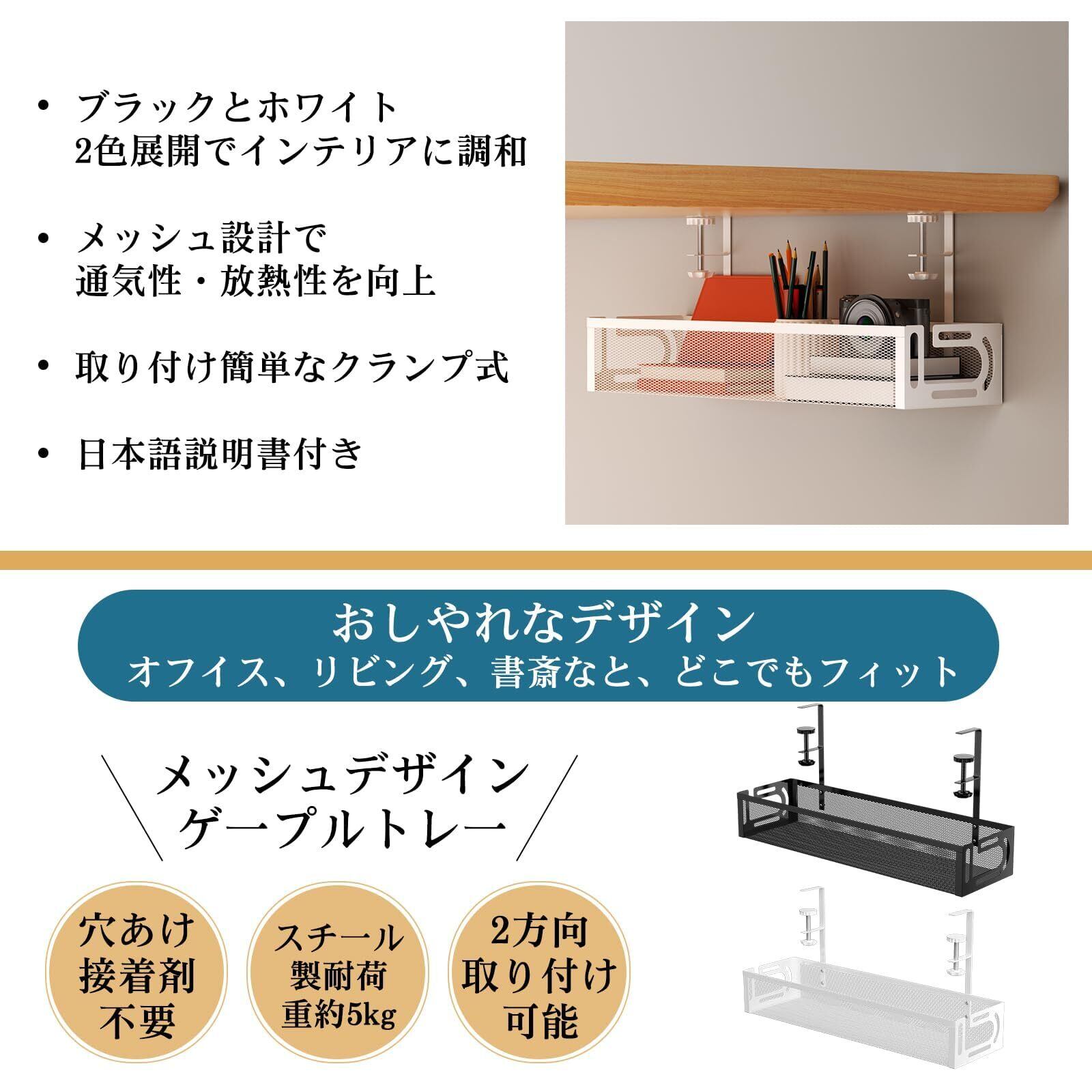 ④【丈夫なスチール製&大容量設計】耐荷重5kgの信頼性 高品質スチール(炭素鋼)を使用した配線収納トレー。ラッカー塗装で防錆・防水、耐久性も抜群。コード隠し デスク下収納として、最大5kgまで収納可能。デスク配線や電源コードを安全に整理し、転倒・火災リスクも軽減できます。