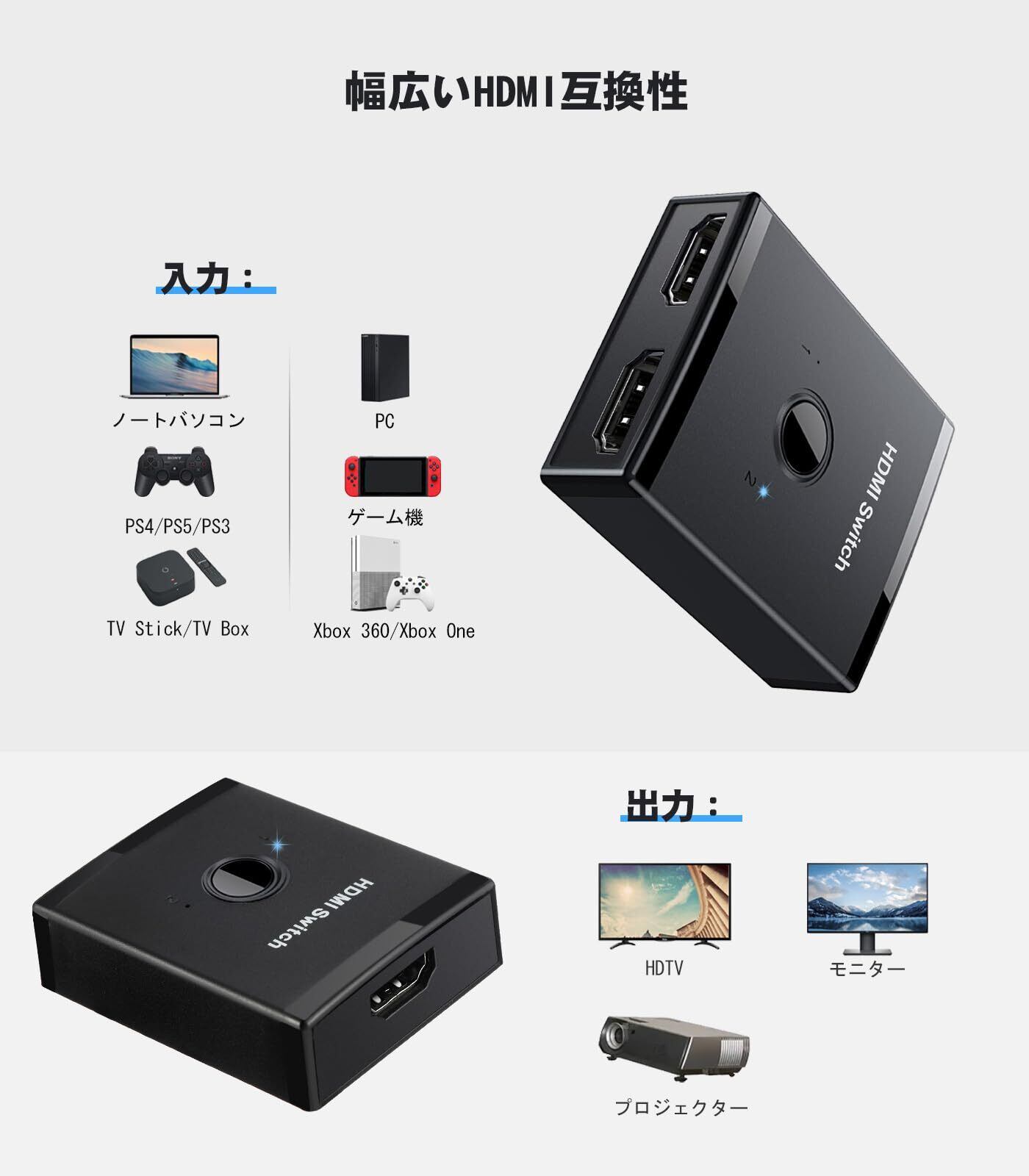 HDMI 切替器 4k@60Hz 分配器 NUIKOTI双方向 HDMIセレクター 1入力2出力/2入力1出力 手動 切り替え器 Xbox PS5/4/3 TV Stick PC ブルーレイプレーヤー テレビ プロジェクター 等に適用
