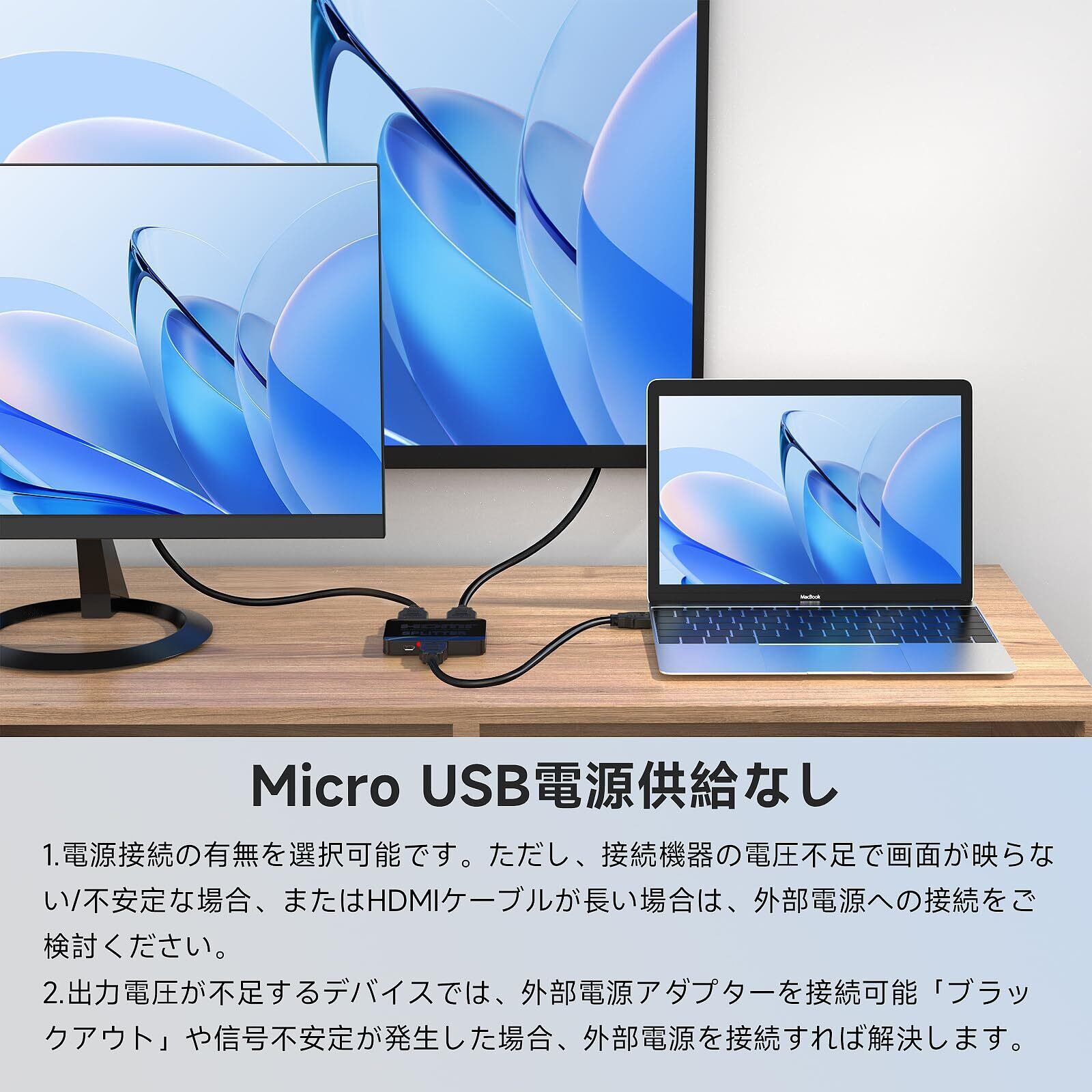 【安心の】パッケージ内容:HDMIスプリッター本体 ×1、高速HDMIケーブル ×1、USB給電ケーブル ×1、取扱説明書(日本語) ×1 内容:間のが付いており、何かご不明な点があれば、サポートチームが迅速に対応いたします。