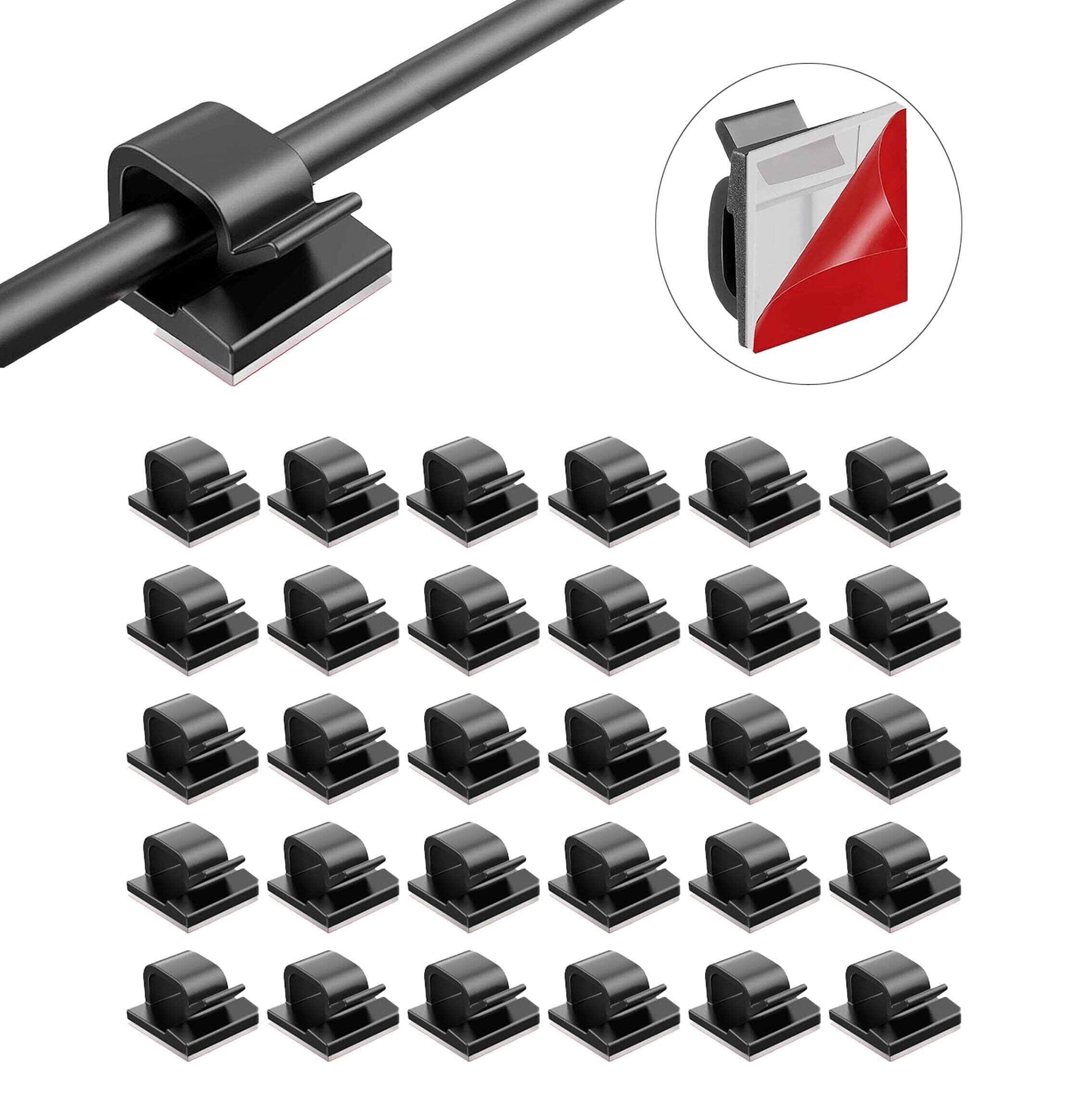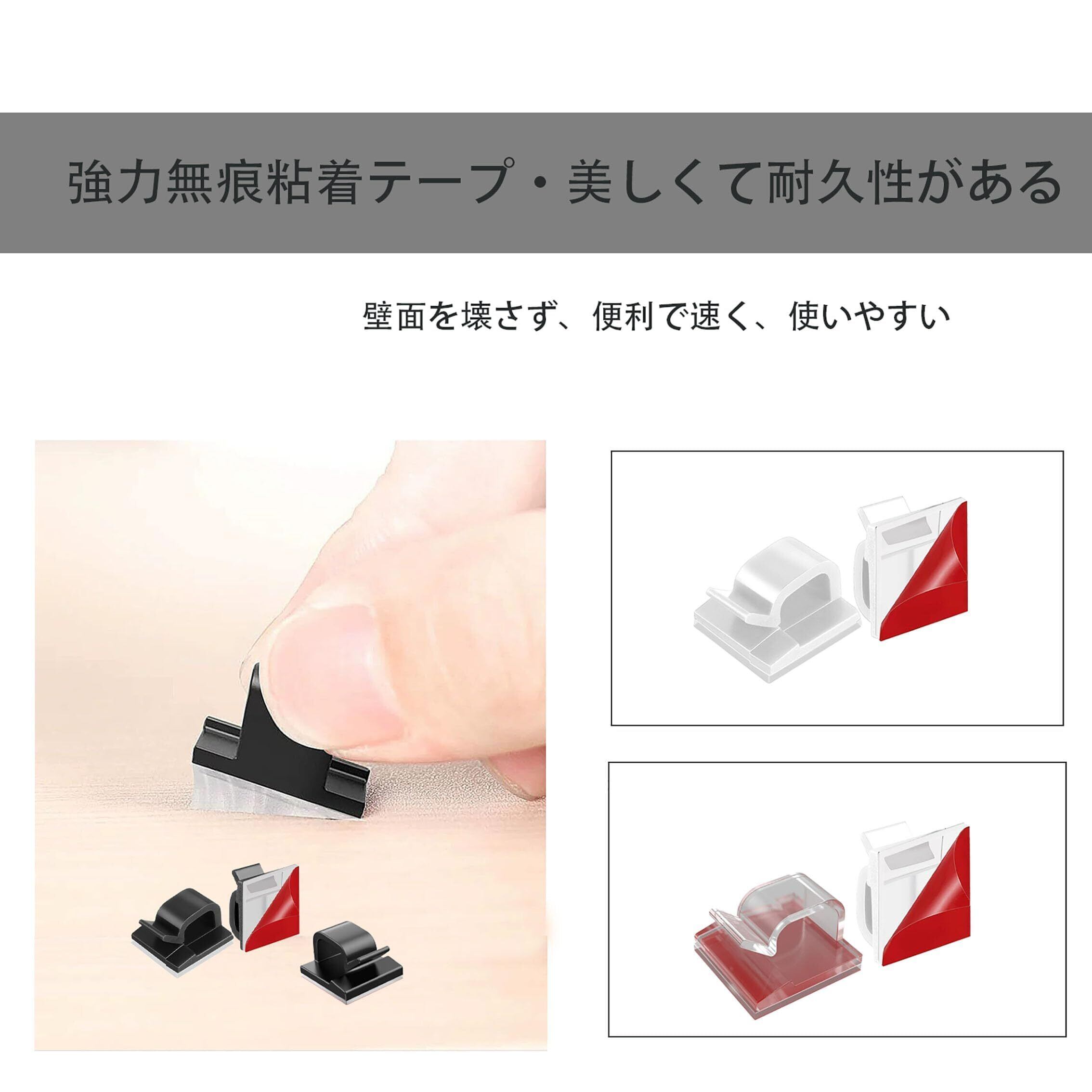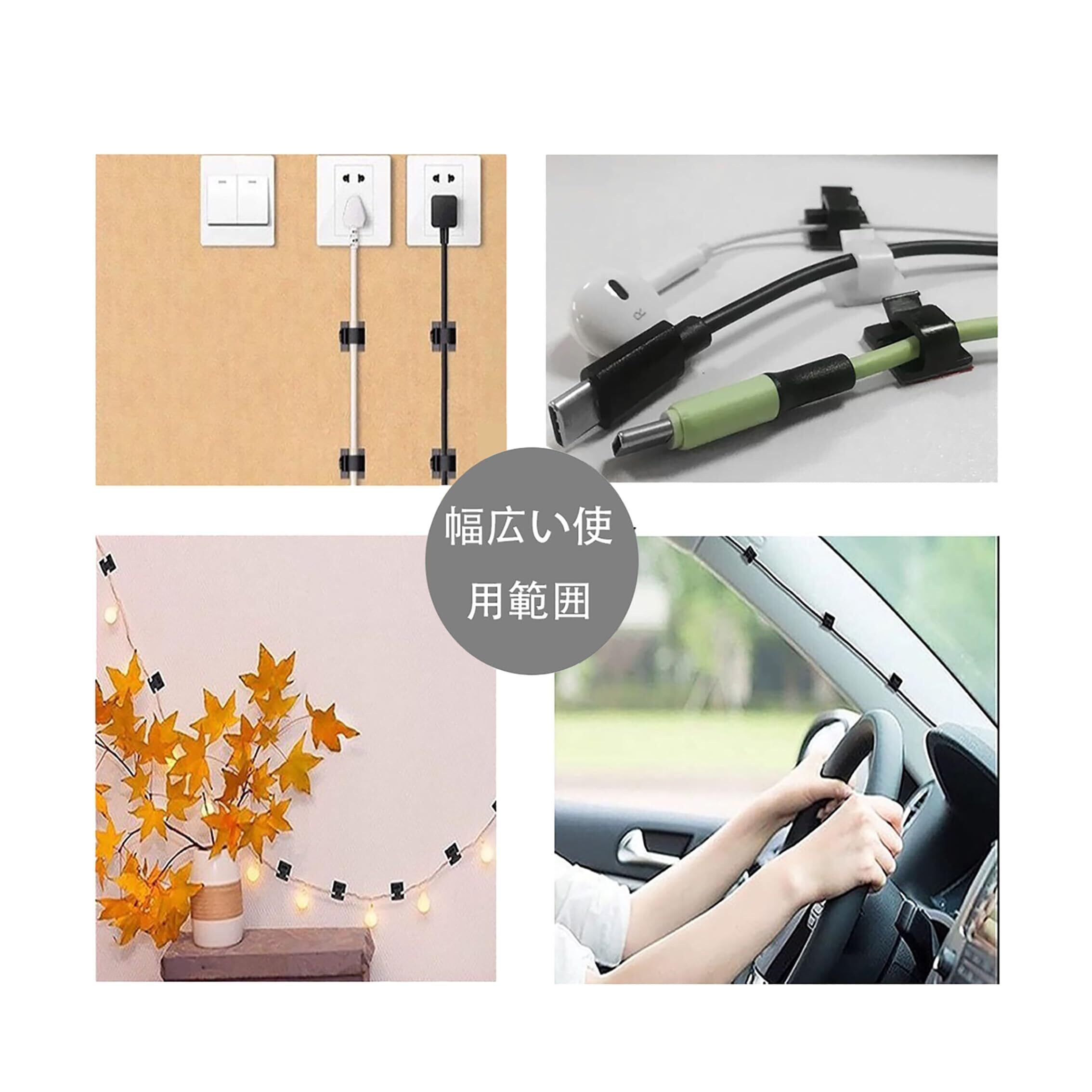 ケーブルクリップ ケーブルスタンド テーブル収納 車用 配線 電線クリップ 配線隠し コードフック 強力な両面テープ (30個入り) ブラック