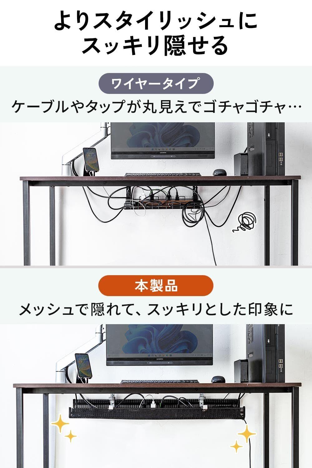 【見た目すっきりな 配線隠し 】メッシュタイプなので、タップや ケーブル 類を隠しつつもすっきりとした印象にすることができます。さらに落ち着いた 黒 色のデザインで、デスク周りに違和感なく設置できます。