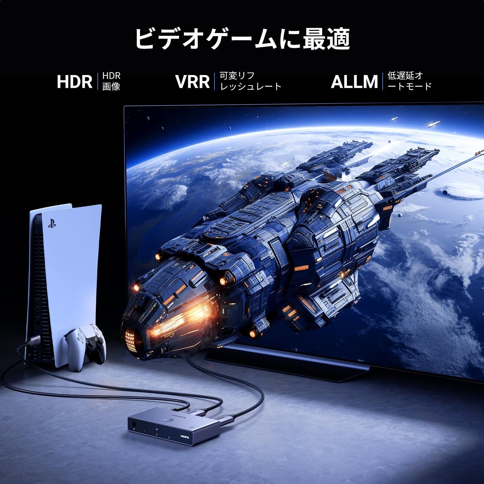 UGREEN HDMI 切り替え器 3入力1出力 8K@60Hz/4K@120Hz セレクター リモコン付き 48Gbps HDMI2.1 HDCP 2.3 PS3/PS4/PS5/Switch対応/動作確認済み