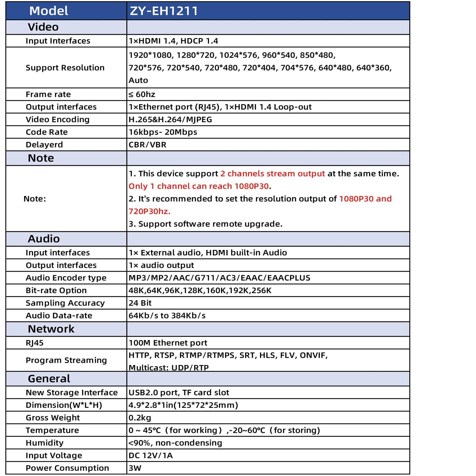 【1080P@30HZ入出力解像度&2チャンネル出力】- HDMIエンコーダは最大1080P@30解像度のHD入出力をサポートします。ライブ放送用のビデオエンコーダは同時に2チャンネルを出力することができます。1チャンネルのみ1080p出力が可能です。H.265/H.264エンコーダは、複数の異なるプロトコルの同時出力をサポートしていますが、同時出力1080P30をサポートしていません。