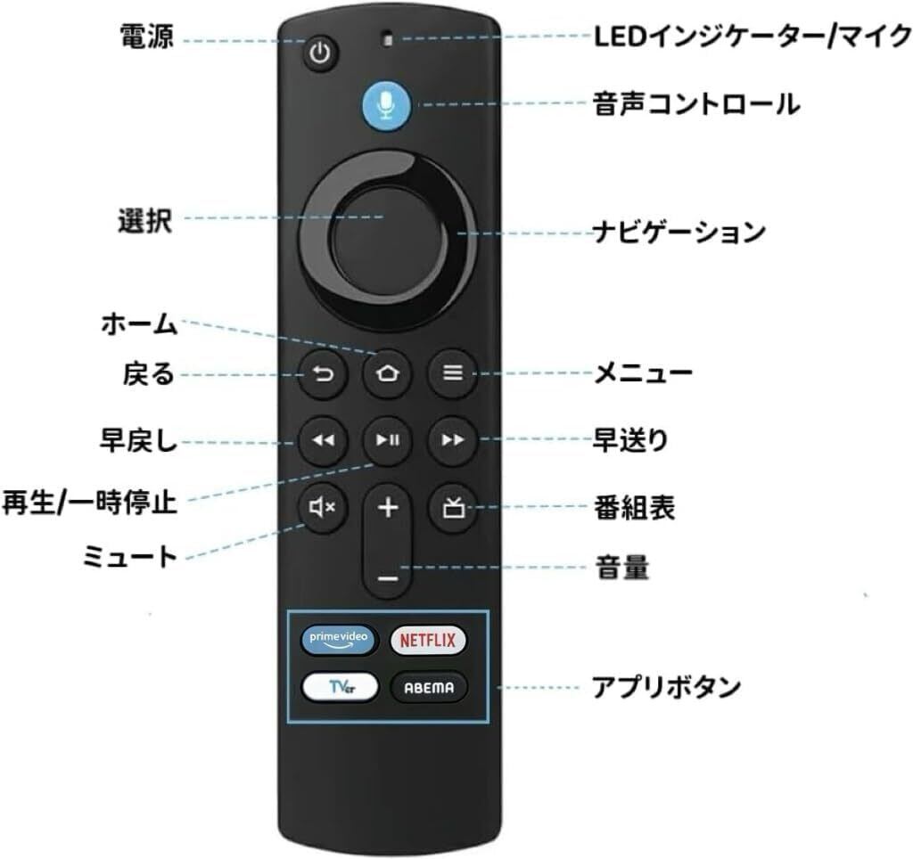 交換用リモコン TVリモコン for TV 音声リモコン スティック Stickリモコン交換 プリセットAPPボタン搭載 音声認識機能付き テレビリモコン プリセット交換用 リモコンのみ(L5B83G)日本語説明書 電池付き