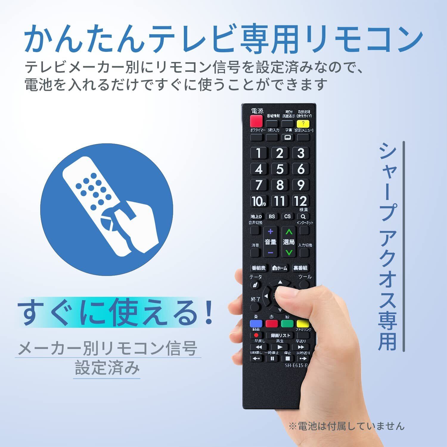 【かんたん】シャープ製テレビ アクオスに設定済みで、登録作業をすることなくそのまま使えるかんたんTV用リモコンです。(※機種によっては一部の機能が操作できない場合があります。)